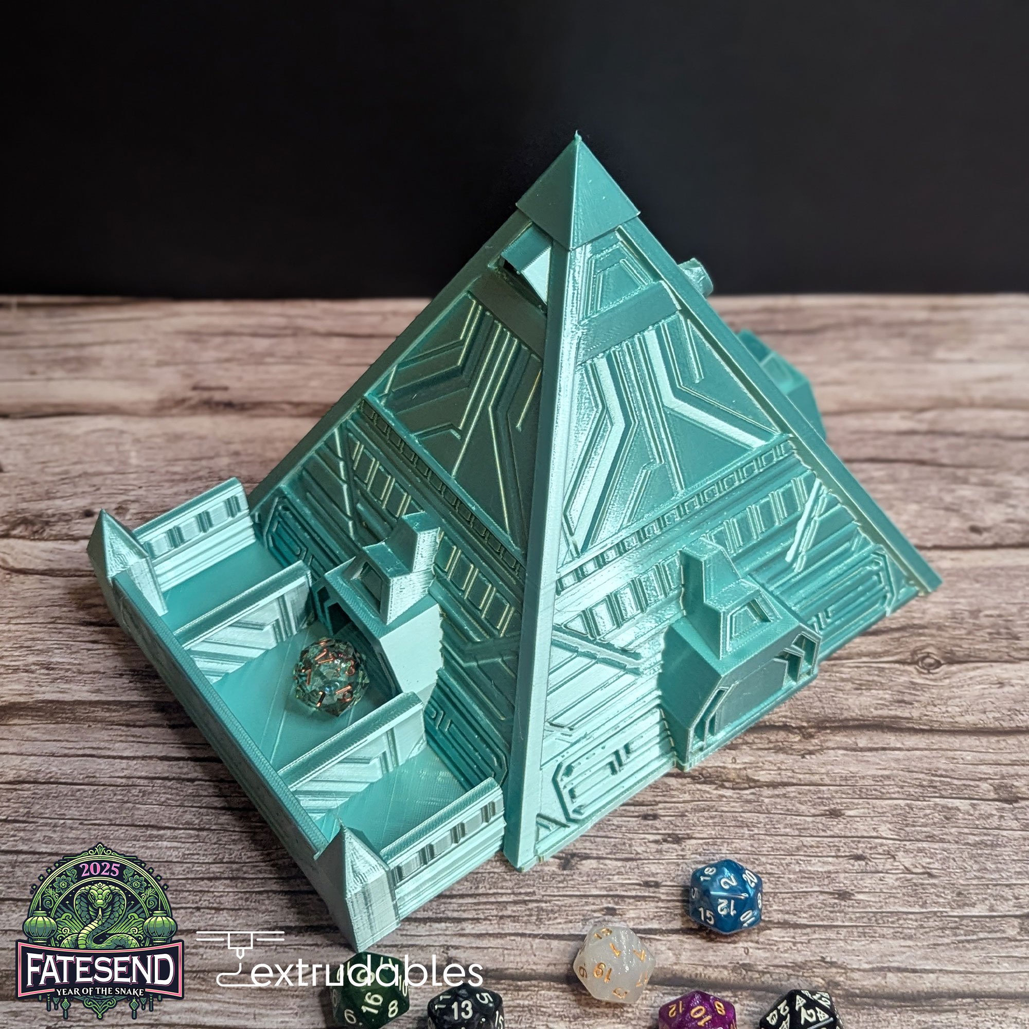Unlock the mysteries of the cosmos with the PLA 3D Printed Alien Pyramid Dice Tower. Blending ancient architecture with extraterrestrial influence, this unique dice tower is designed to bring an air of mystery and advanced technology to your tabletop adventures. With intricate carvings, futuristic symbols, and an enigmatic energy, this dice tower turns every roll into a moment of cosmic fate