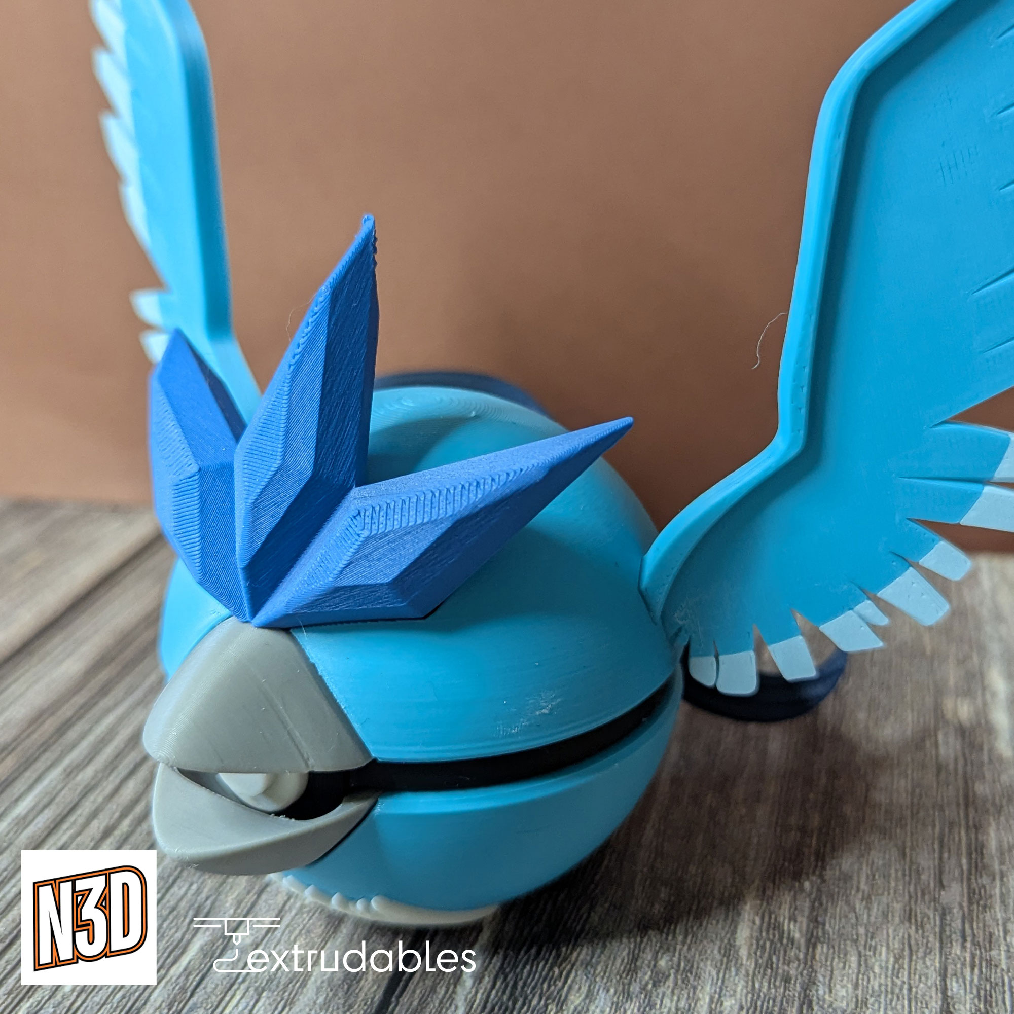 Each ball is made using eco-friendly PLA filament, giving it a lightweight yet solid build. Bring the icy majesty and legendary grace of Articuno to your collection with this Articuno Poké Ball – a standout piece for any fan of mythical Pokémon!
