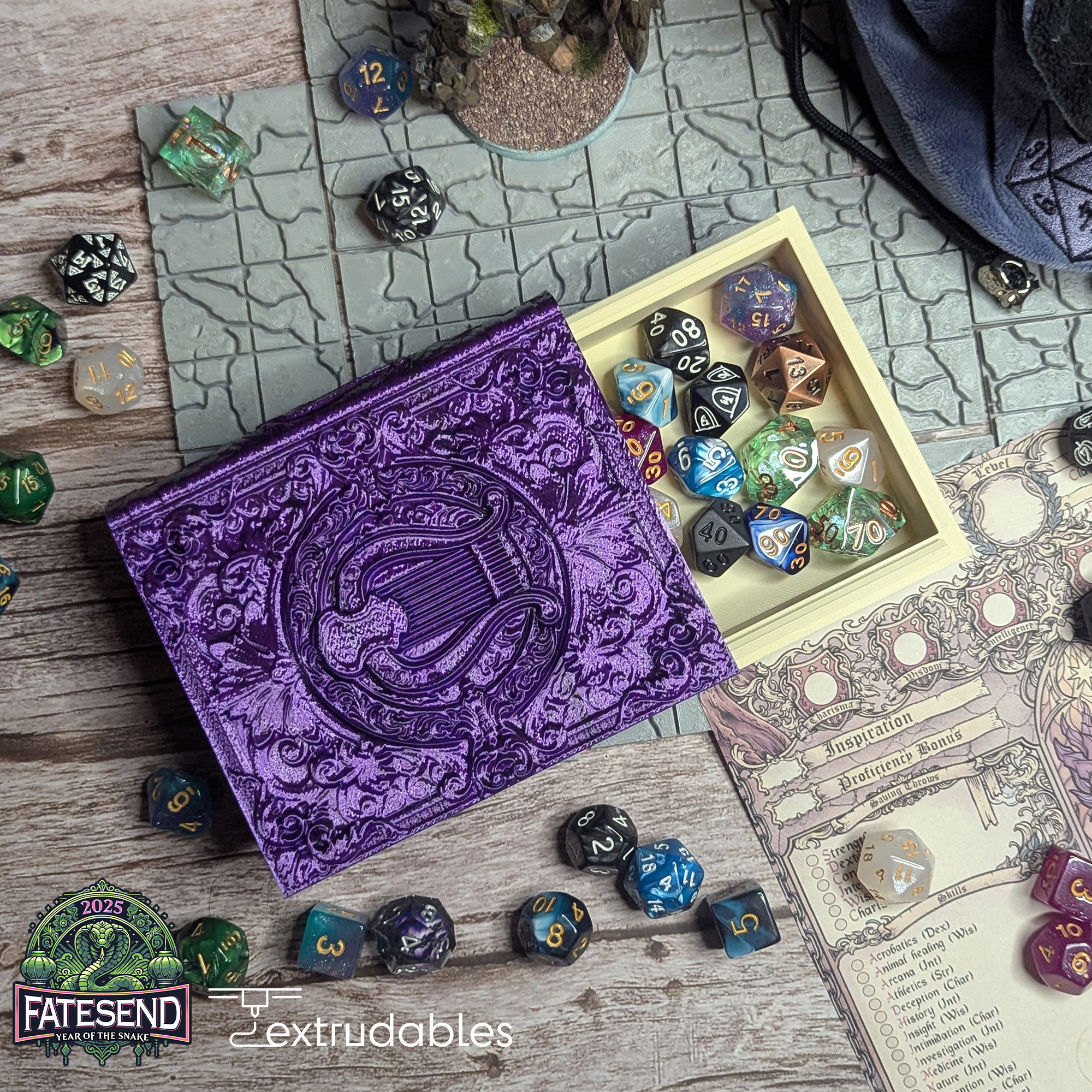Whether you’re weaving spells, telling tales, or serenading your allies, the Bard Tome Dice Vault and Dice Tray is the ideal companion for your tabletop performances. Keep your dice in harmony and let your creativity shine with this masterpiece of function and design!