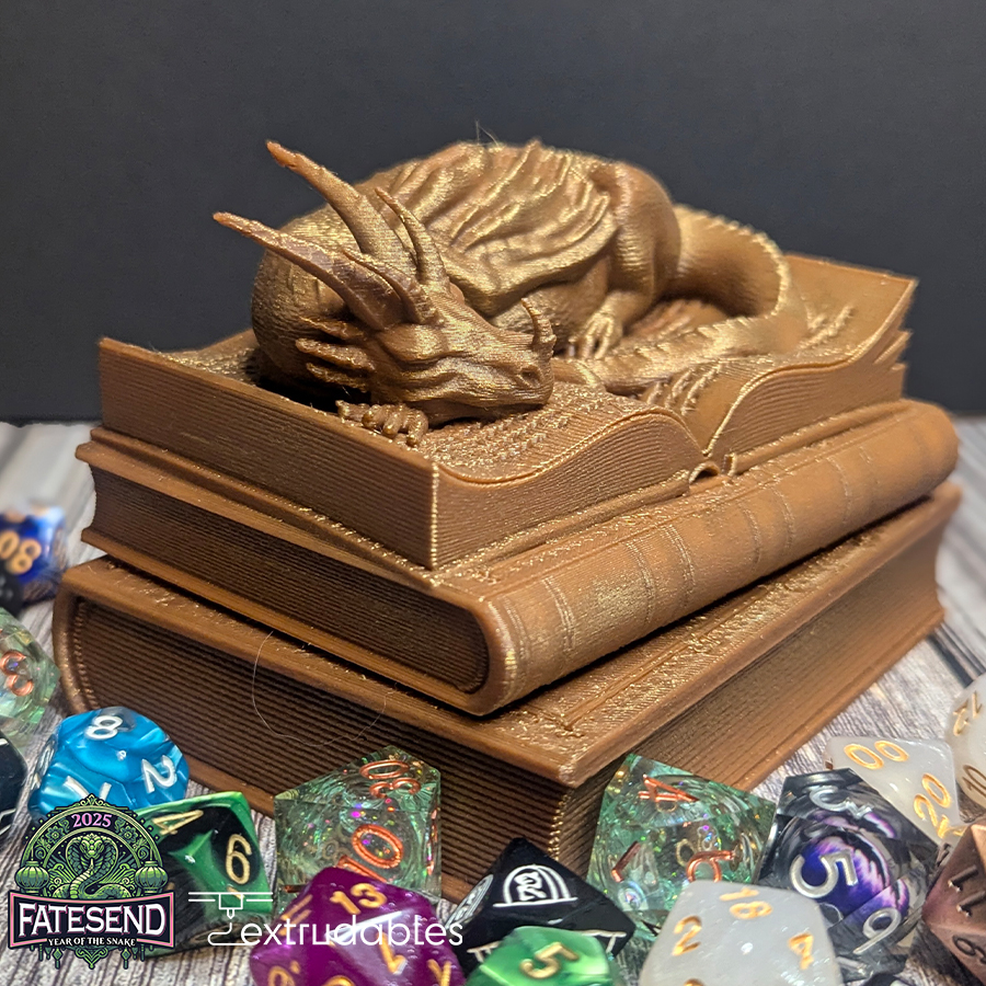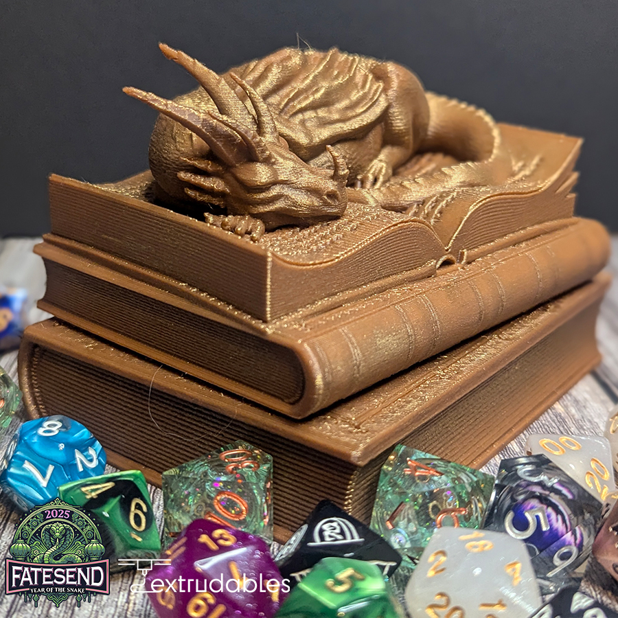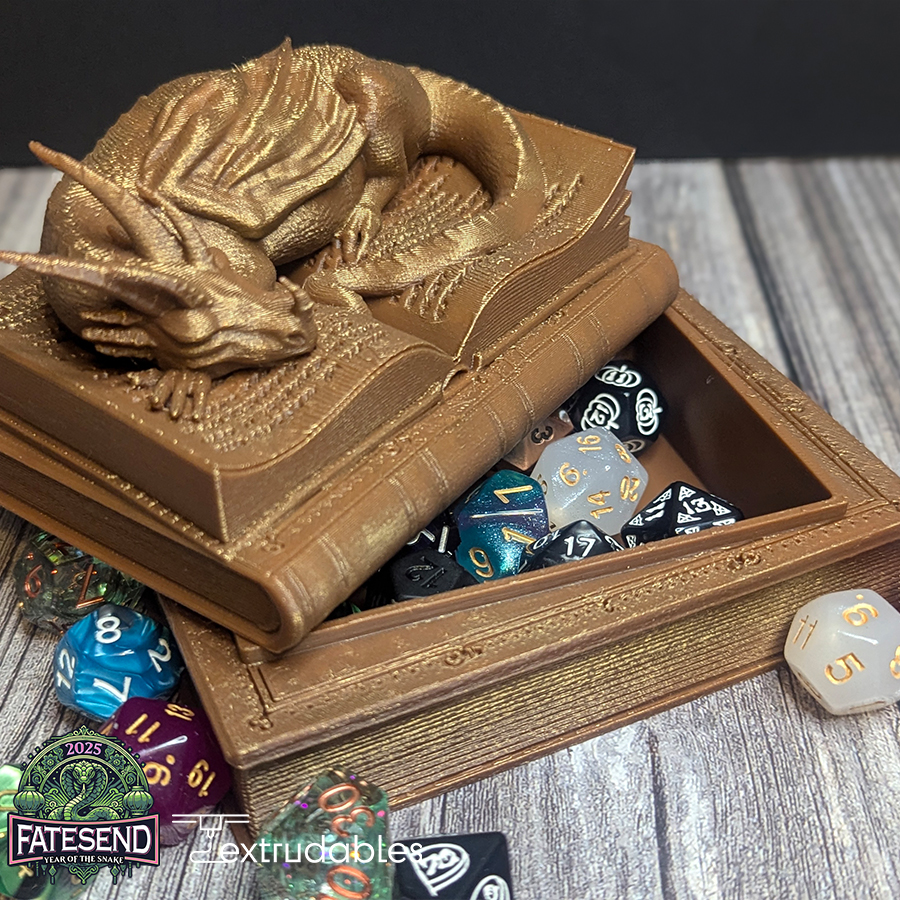 Store your dice in style with the 3D Printed Book Dragon Dice Vault—a must-have for any gamer who wants to add a touch of mythical power and elegance to their collection!