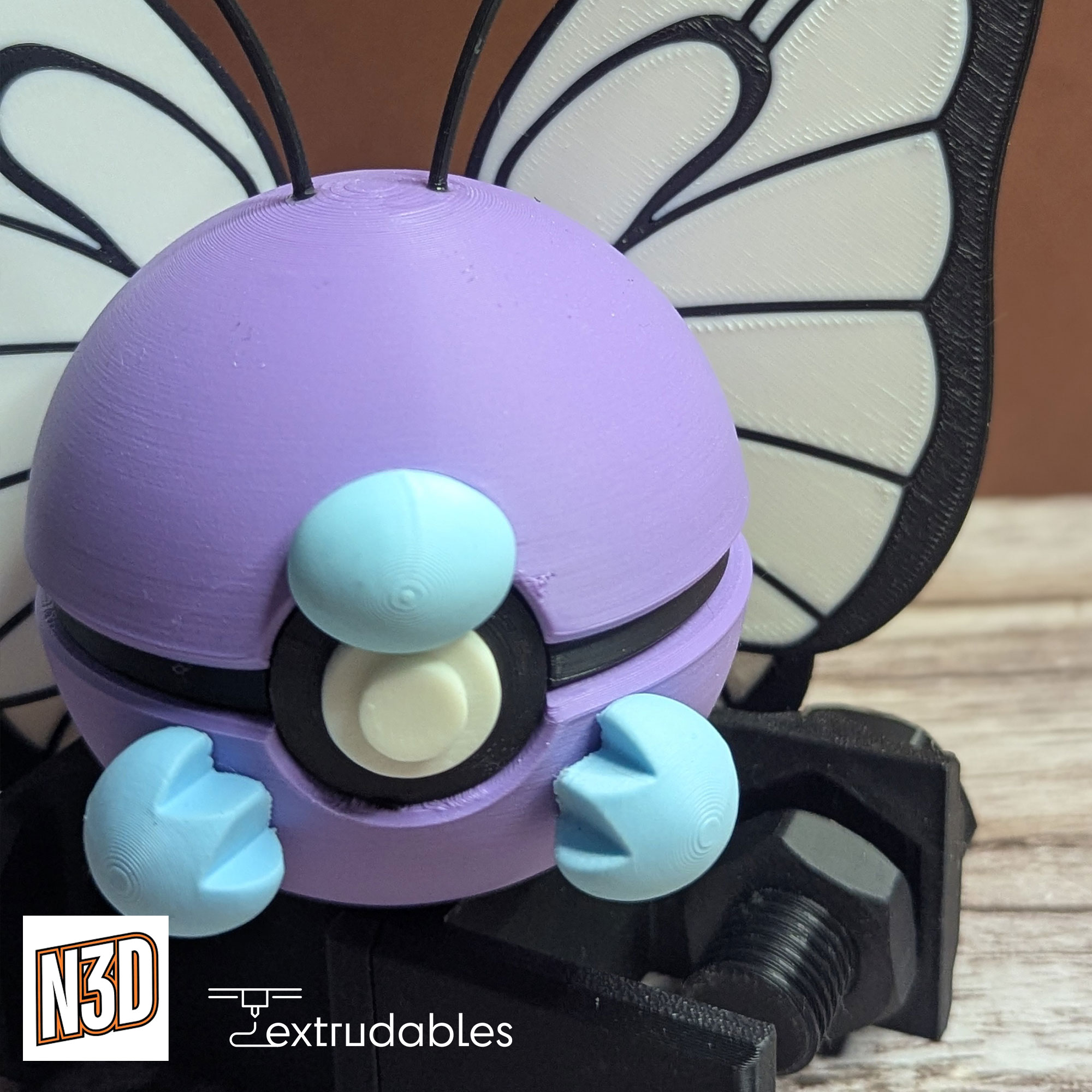 Each ball is made using eco-friendly PLA filament, giving it a lightweight yet solid build. Bring beauty, freedom, and nostalgia to your collection with this Butterfree Poké Ball – the perfect piece for fans of classic Pokémon!