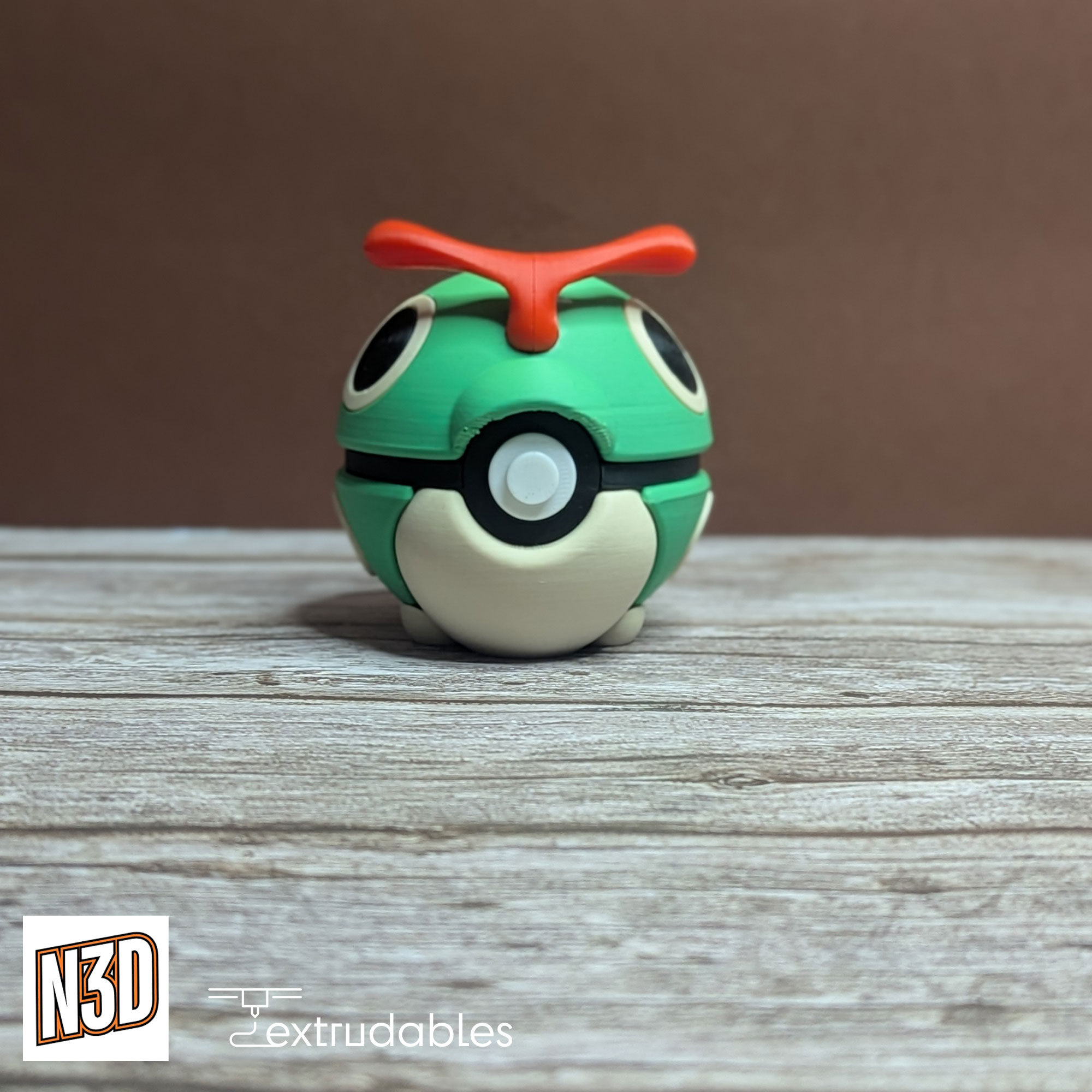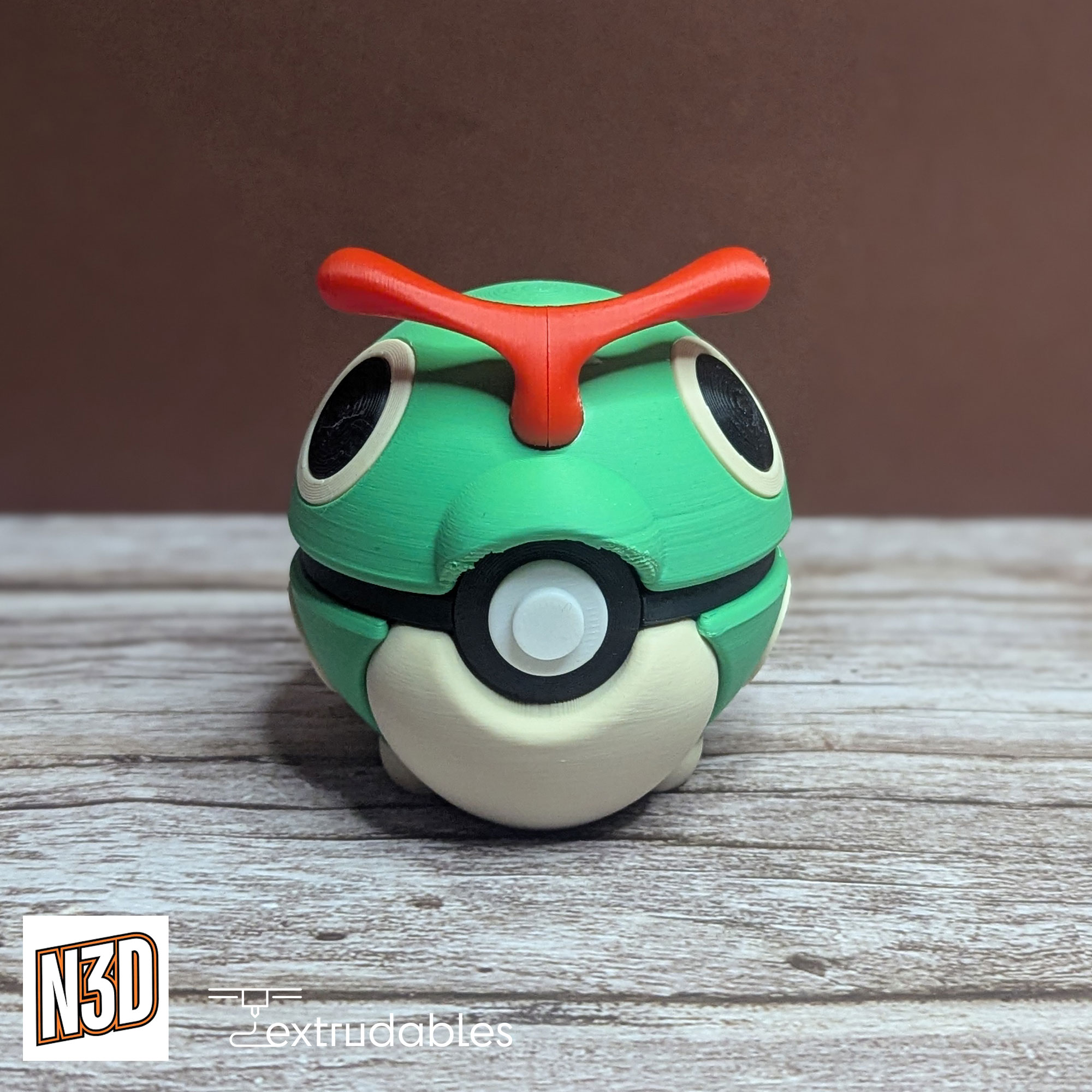 Each ball is made using eco-friendly PLA filament, giving it a lightweight yet solid build. Bring the beginning of the Bug-type evolutionary line to your collection with this Caterpie Poké Ball – a charming piece for any Pokémon enthusiast!