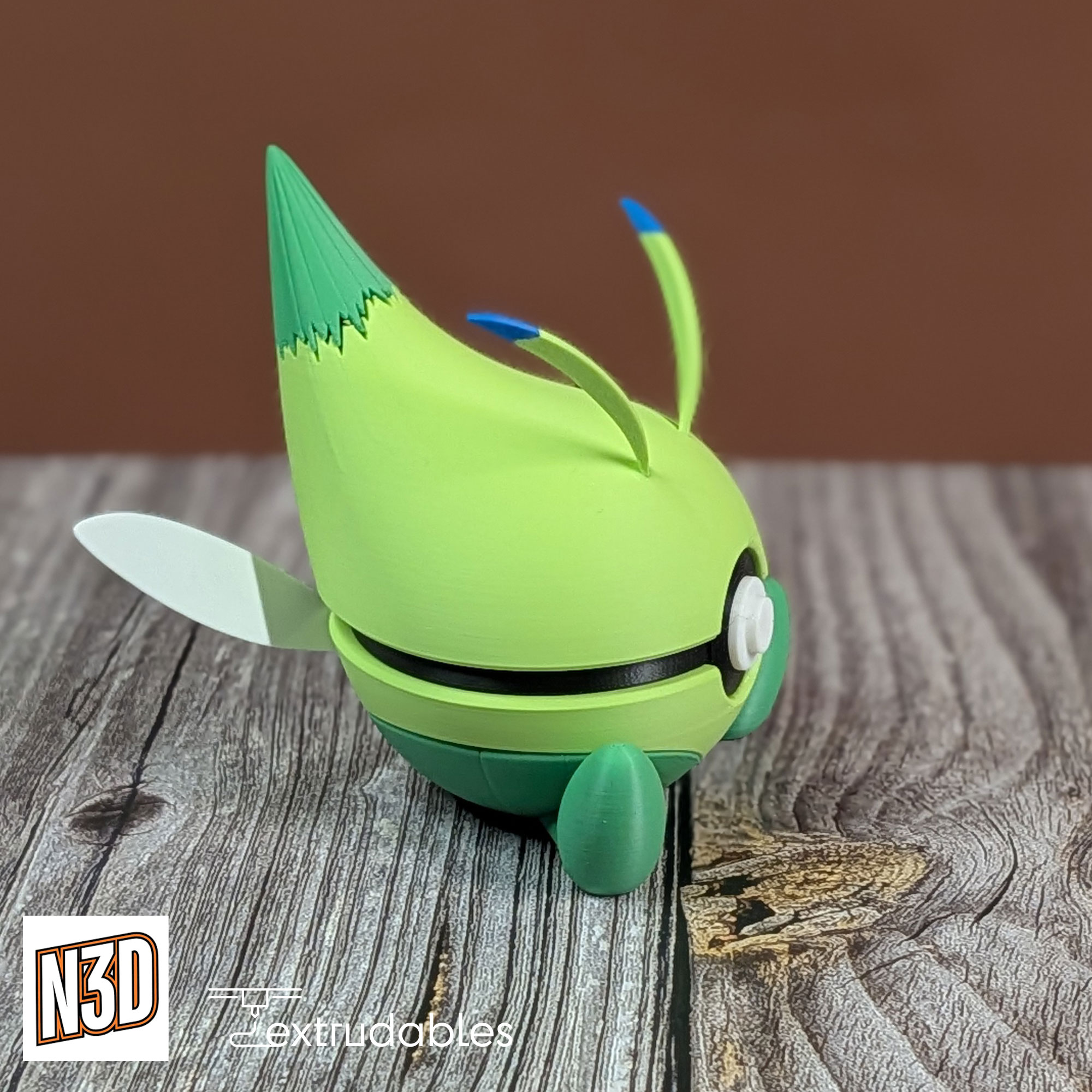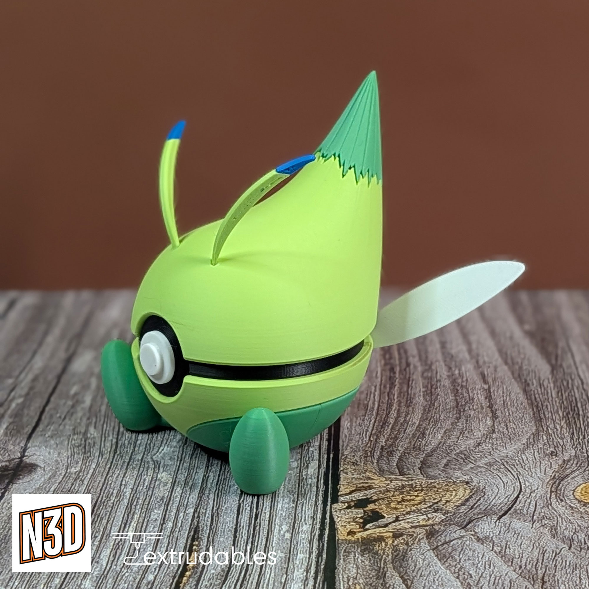 Step into the magical world of Celebi with this enchanting 3D printed Poké Ball. Inspired by the Grass/Psychic-type guardian of time, this design captures Celebi’s mystical, forest-dwelling aura.