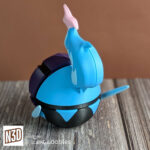 This unique collectible blends the classic Poké Ball shape with bold colors and details inspired by Ceruledge’s dark armor and glowing blue flames, creating a dramatic and eye-catching display piece for Pokémon fans and collectors.