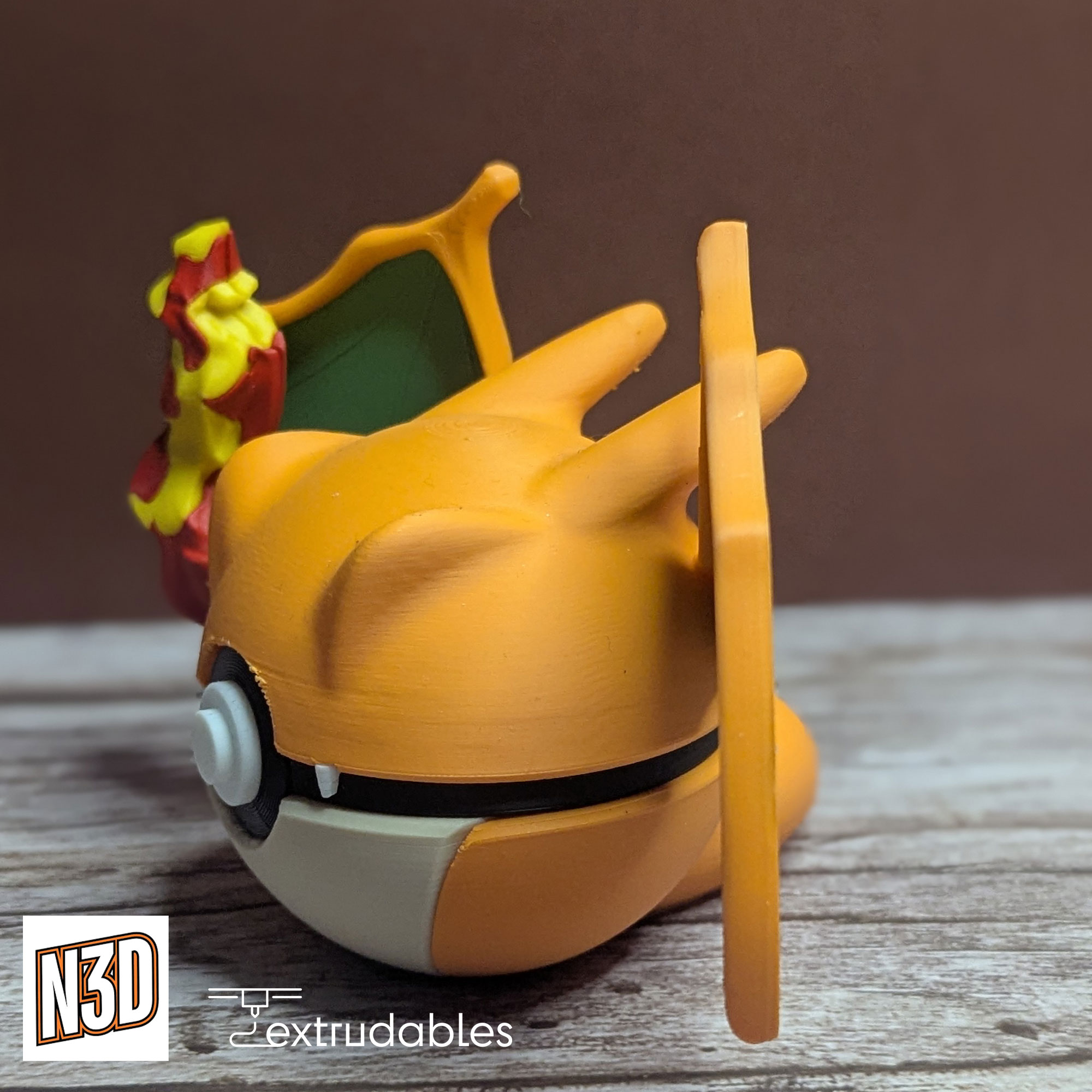 Each ball is made using eco-friendly PLA filament, giving it a lightweight yet solid build. Bring the legendary heat and power of Charizard to your collection with this Charizard Poké Ball – a must-have centerpiece for any Fire-type enthusiast!