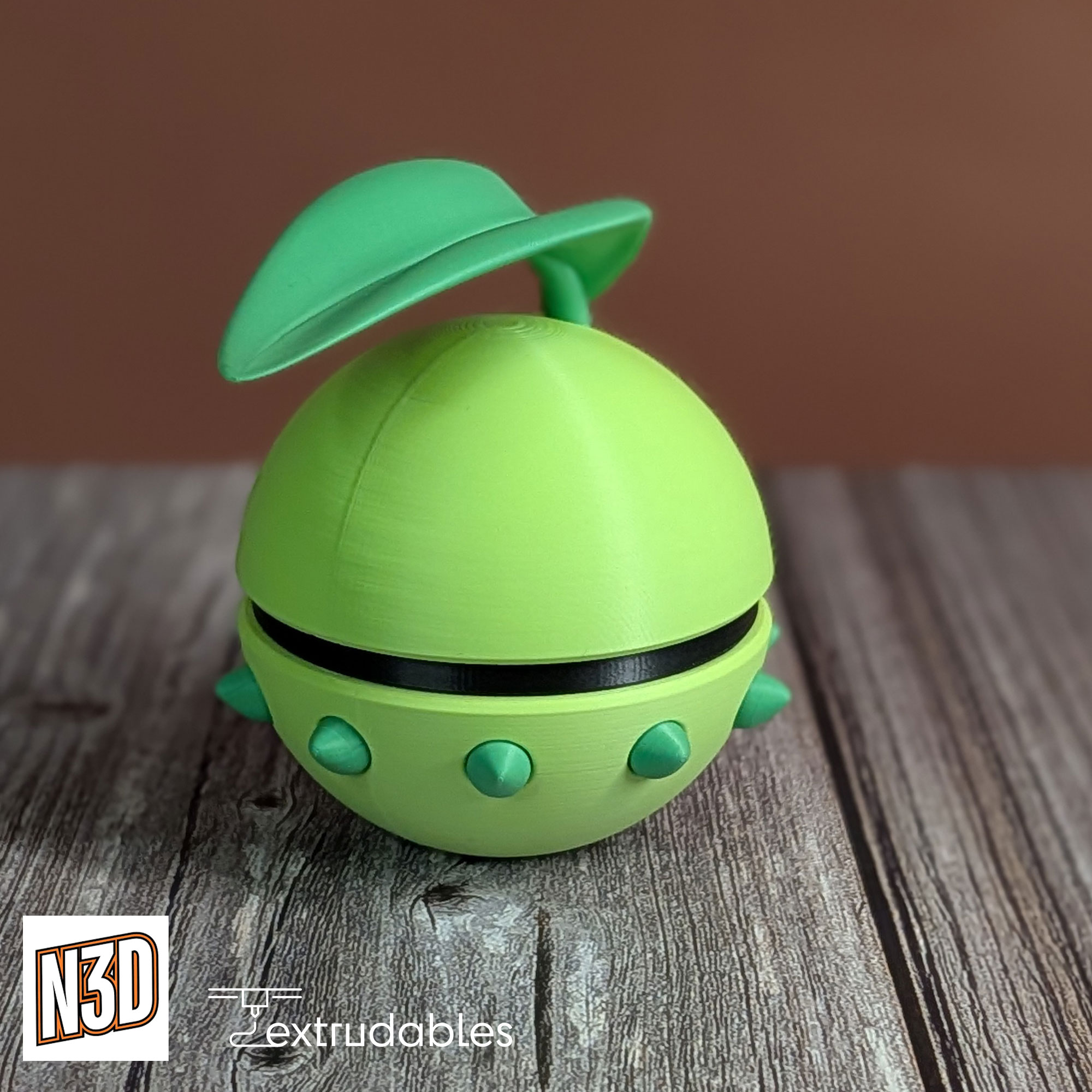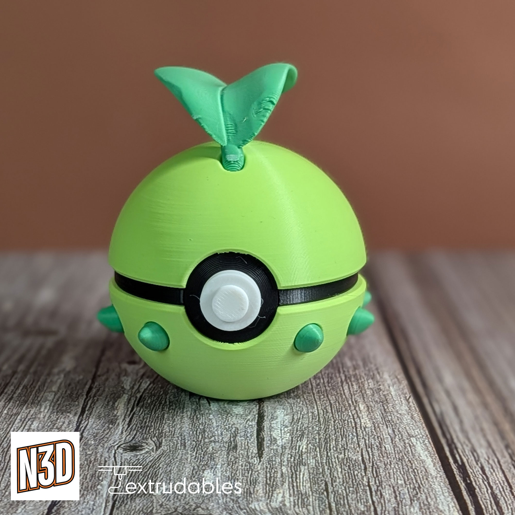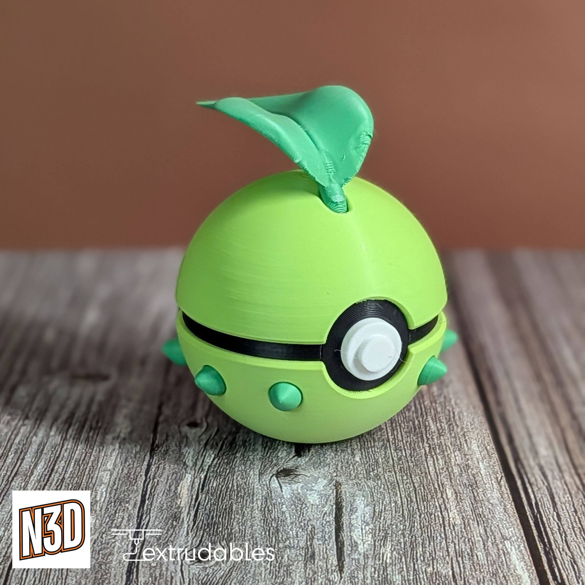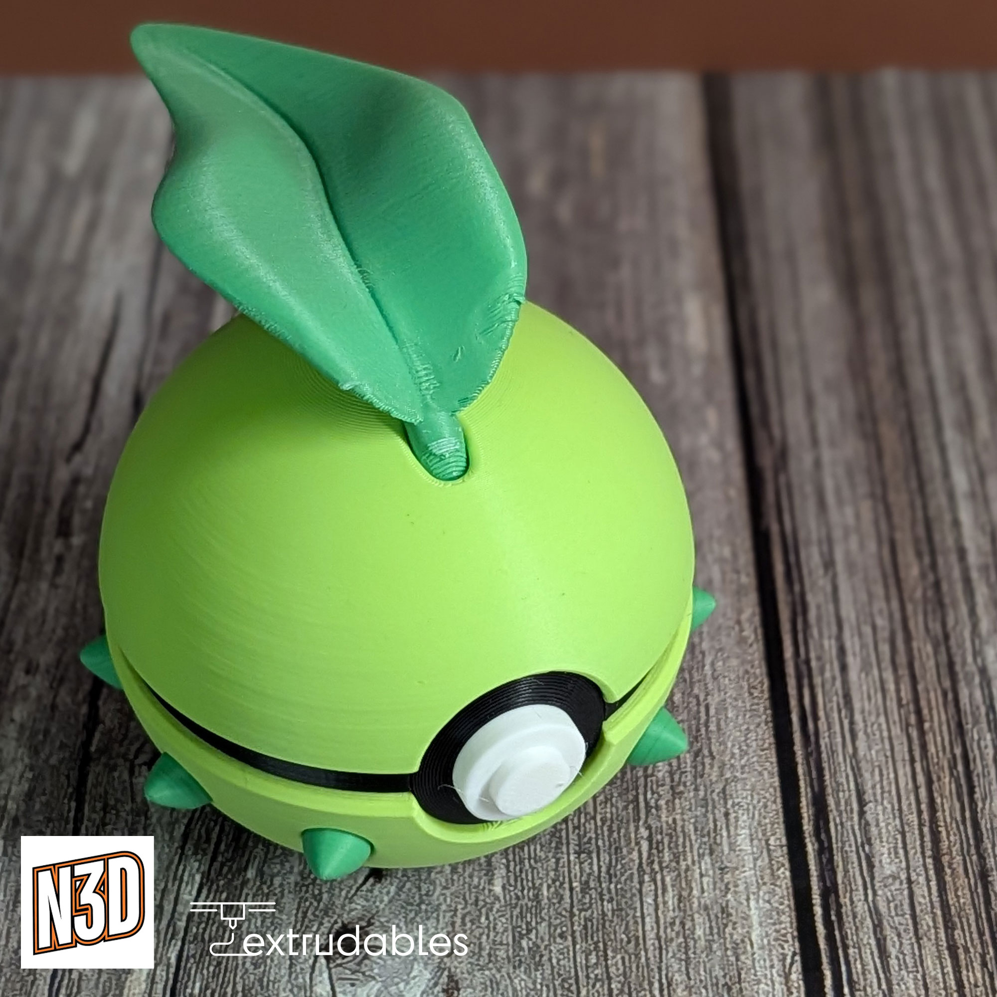 Add a gentle, nature-inspired touch to your collection with this Chikorita-inspired Poké Ball, a charming 3D-printed design inspired by the beloved Grass-type Pokémon Chikorita from the Pokémon series.