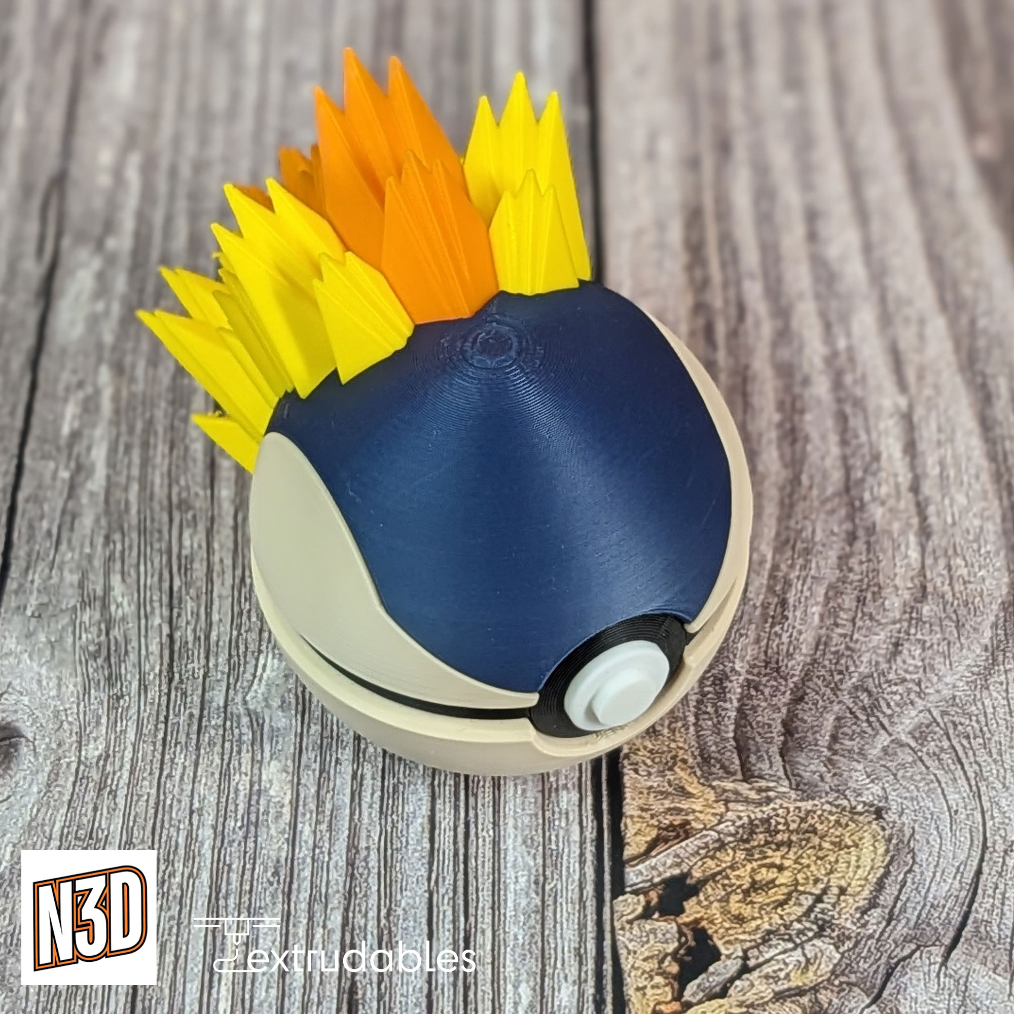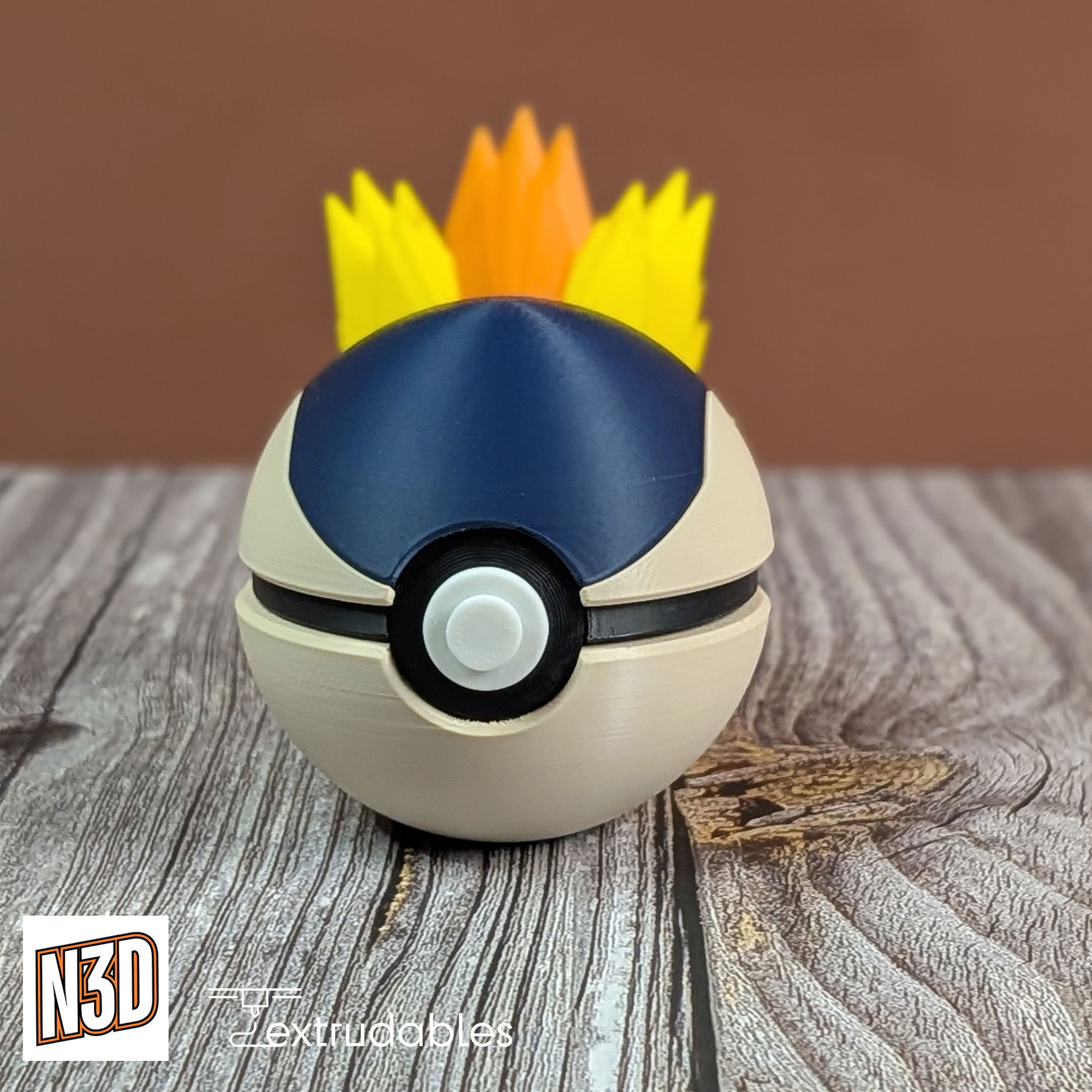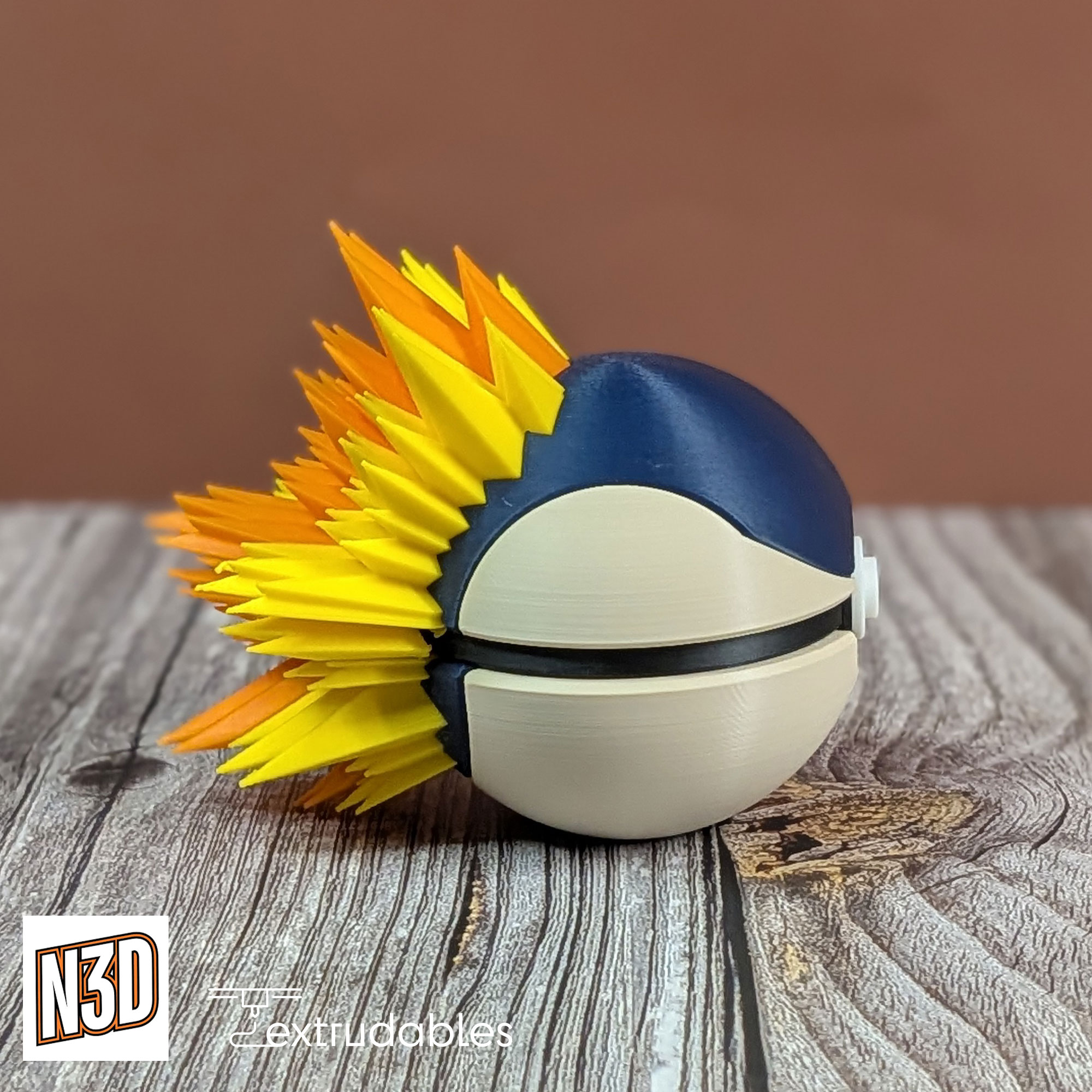 Spark your collection with this fiery Poké Ball inspired by Cyndaquil, the beloved Fire-type starter from the Pokémon universe.