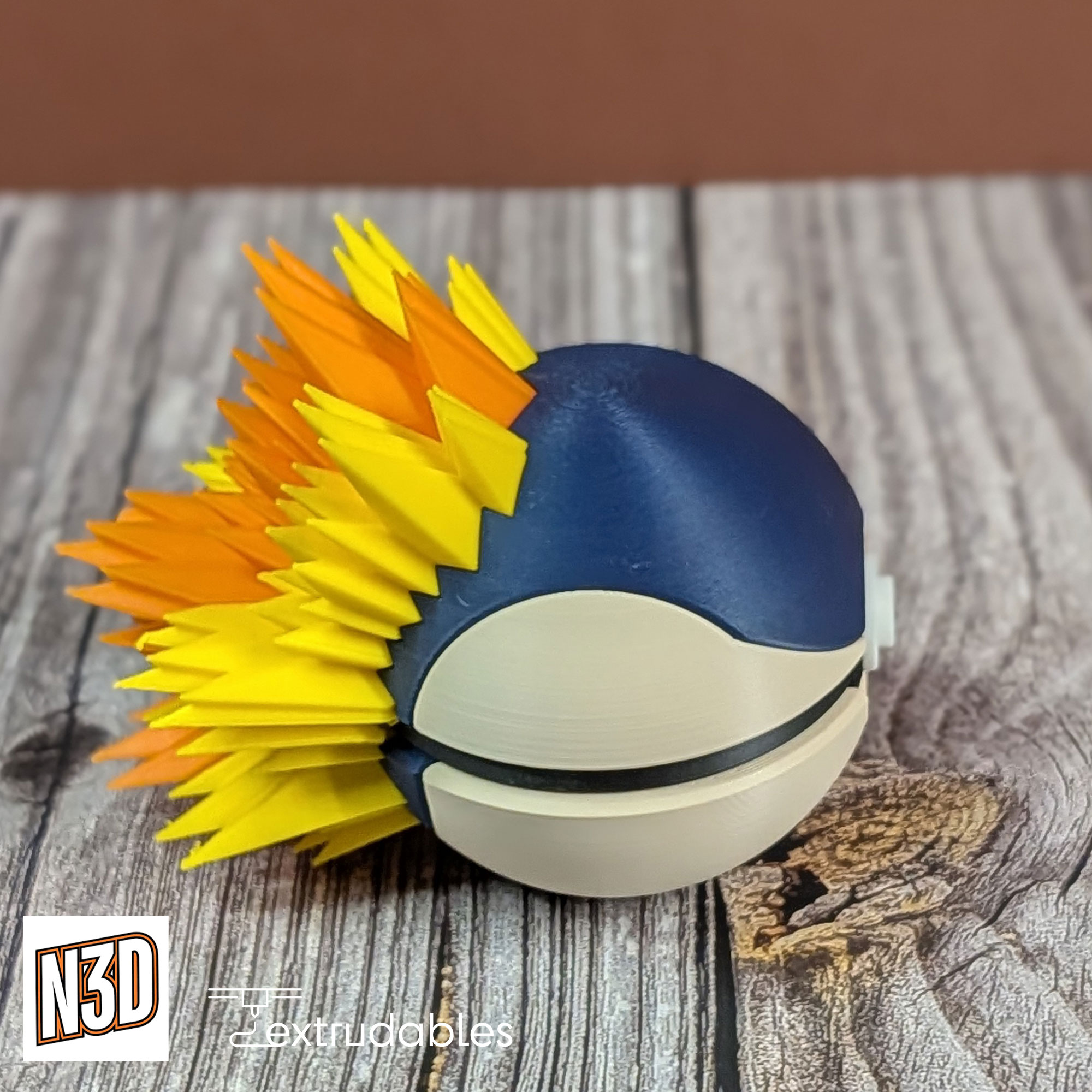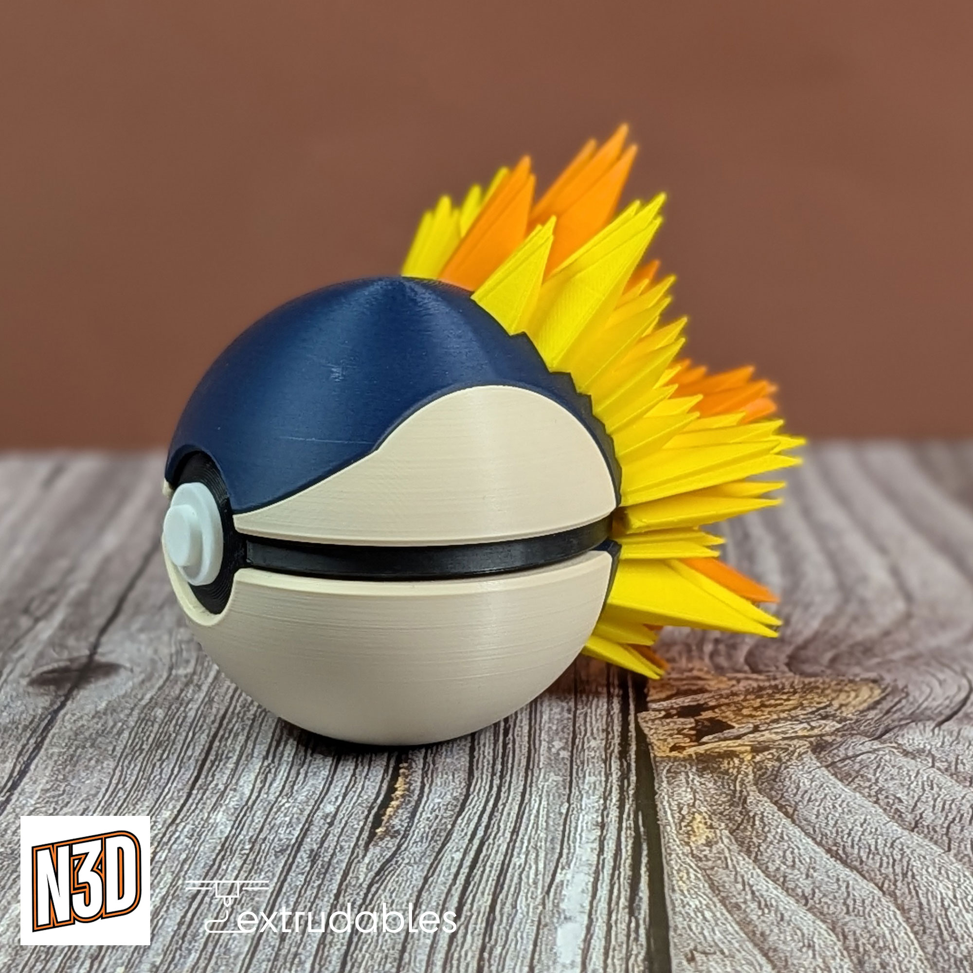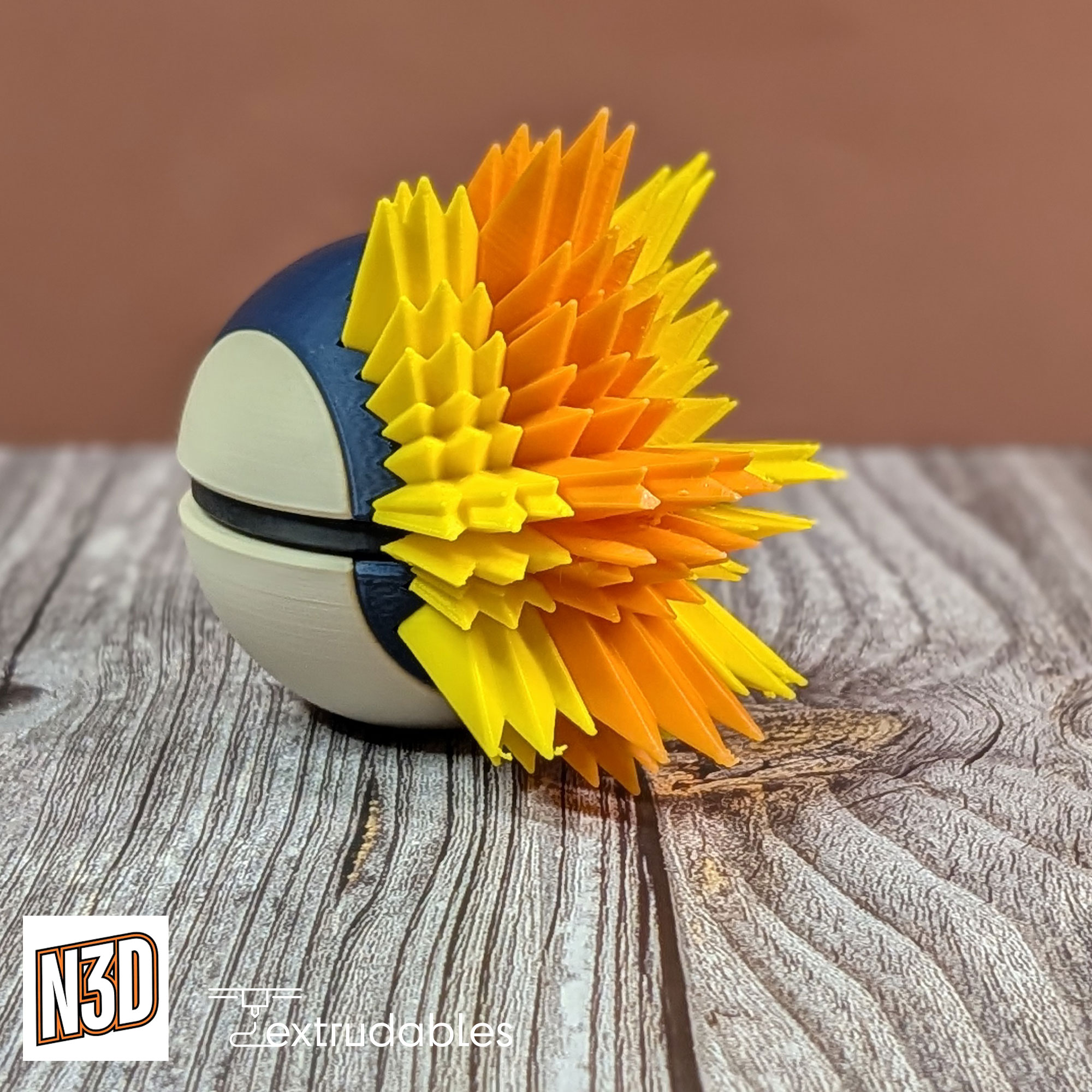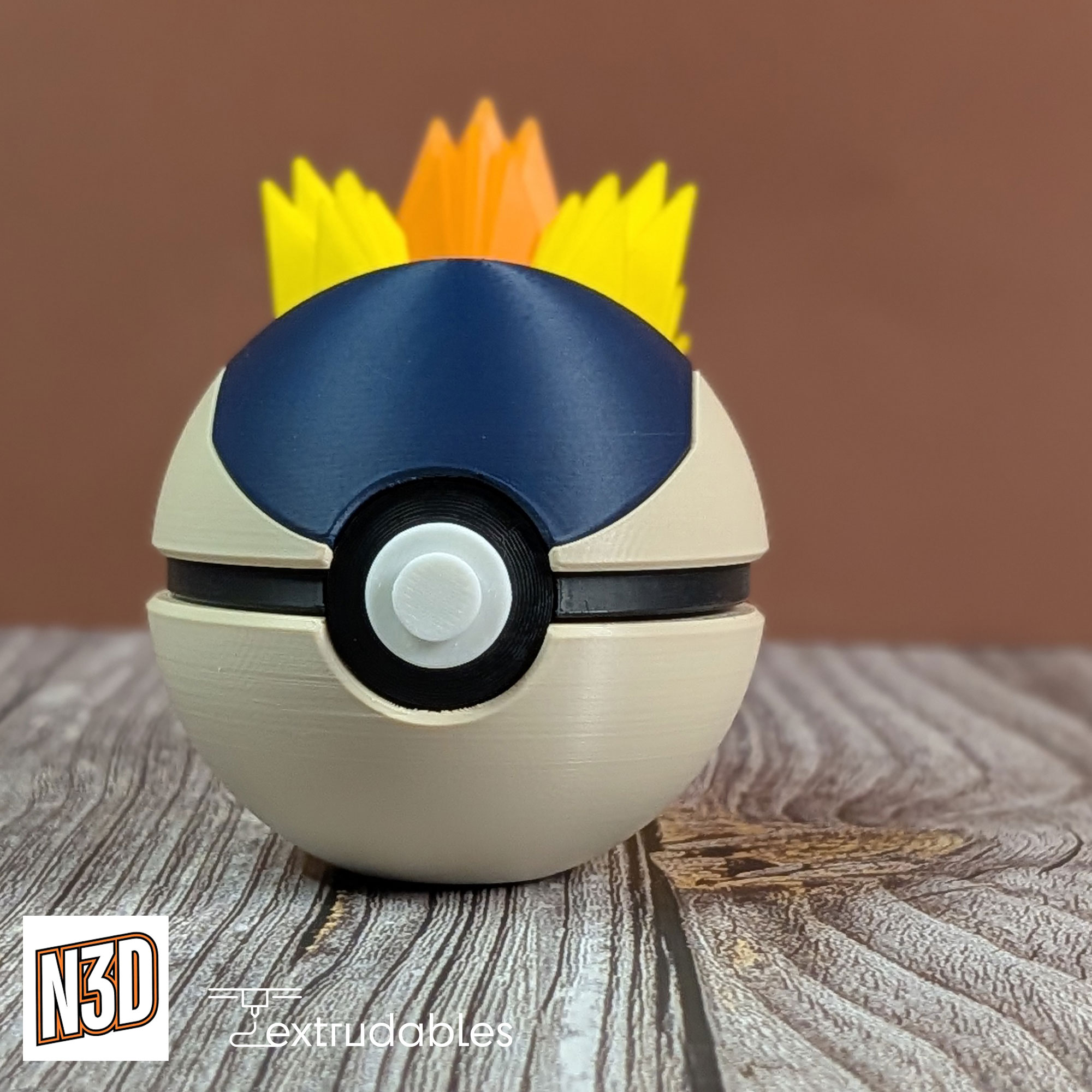 Spark your collection with this fiery Poké Ball inspired by Cyndaquil, the beloved Fire-type starter from the Pokémon universe.