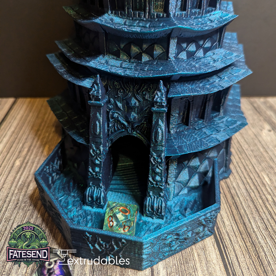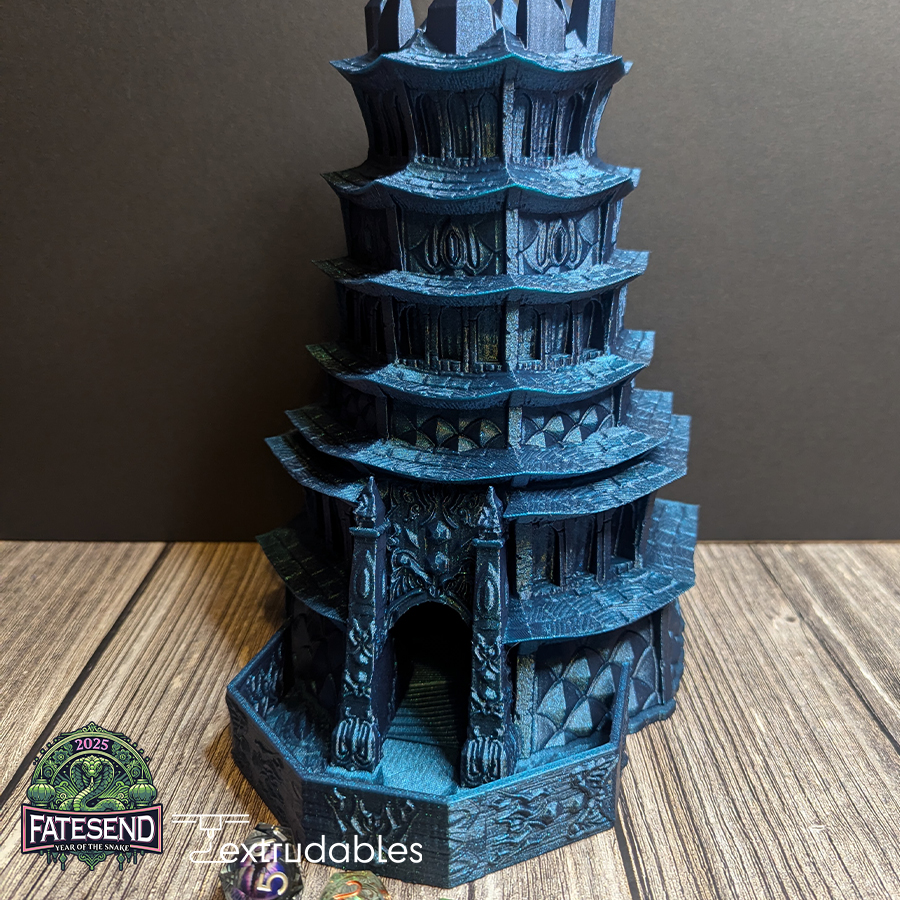Add an air of dark mystery and elegance to your gaming table with the 3D Printed Drow Dice Tower, where the magic of the Underdark meets the thrill of the dice roll. Perfect for any dark elf or underground-themed campaign, this tower will enhance your game with every roll!