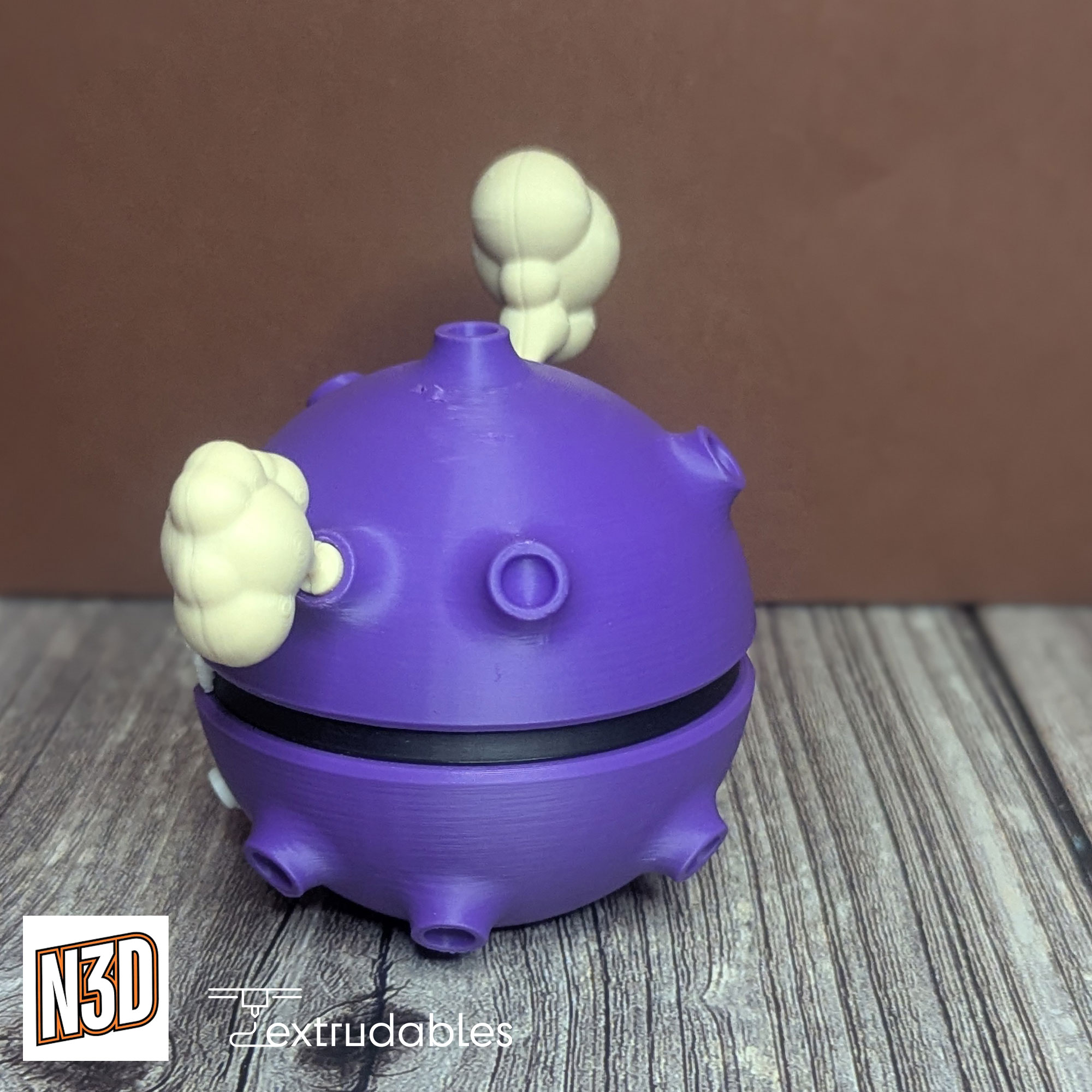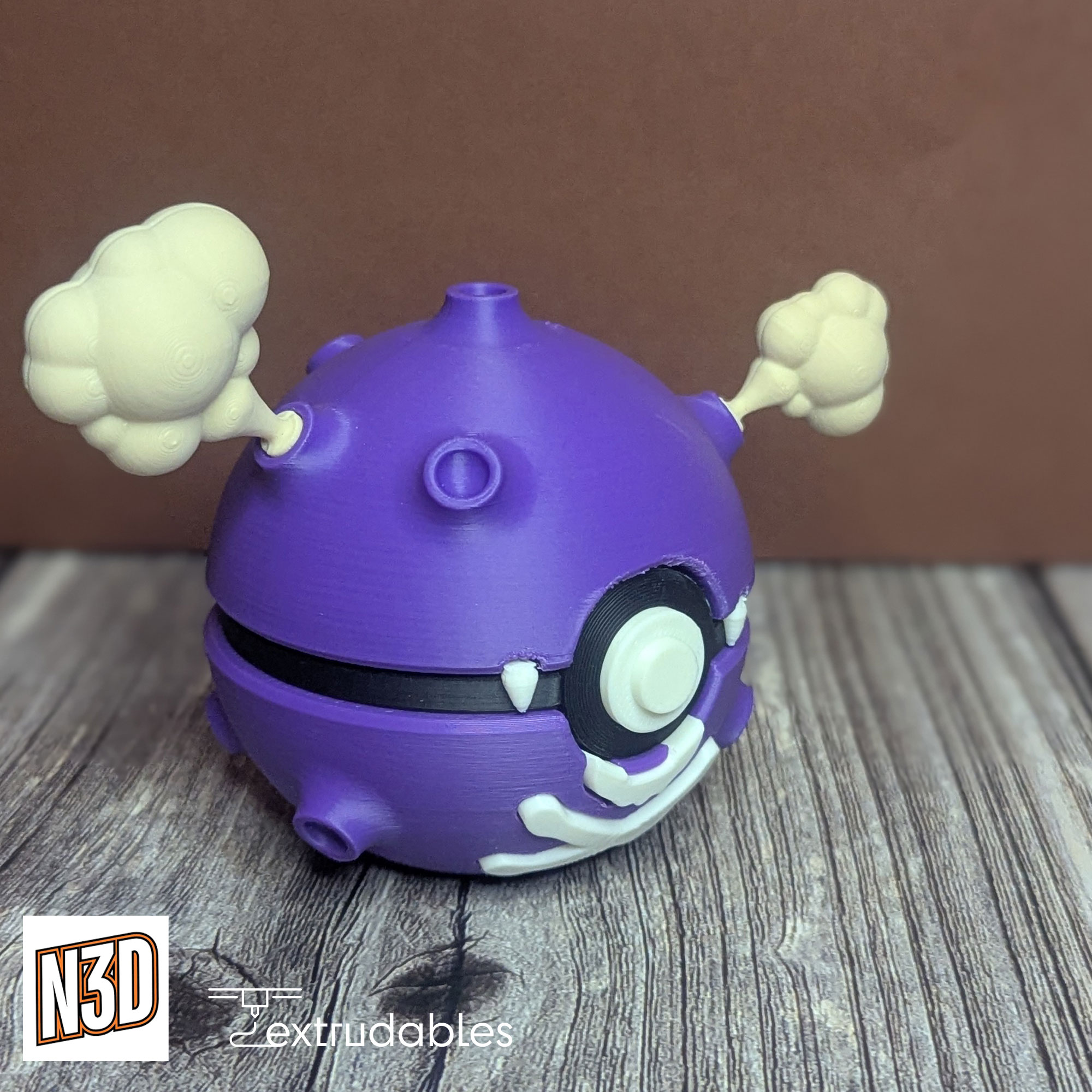 Each ball is made using eco-friendly PLA filament, giving it a lightweight yet solid build. Bring the mischievous charm and Poison-type power of Koffing to your collection with this Koffing Poké Ball – a standout piece for any fan of eccentric or classic Pokémon!