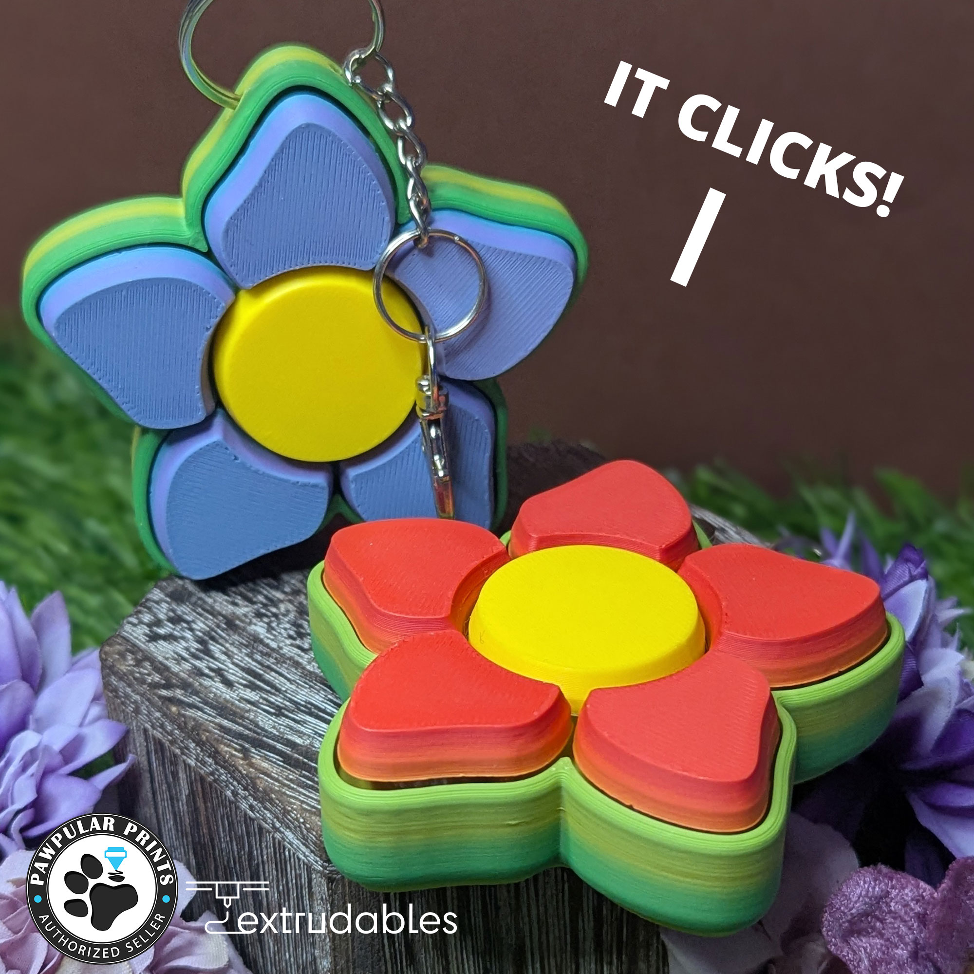 Add a touch of blooming fun to your desk with this 3D printed flower-shaped fidget clicker! Featuring six satisfying mechanical clicks, this charming floral design offers a delightful tactile experience for stress relief, focus, or just playful fidgeting. Its petal-inspired shape and intricate details make it both functional and visually appealing.