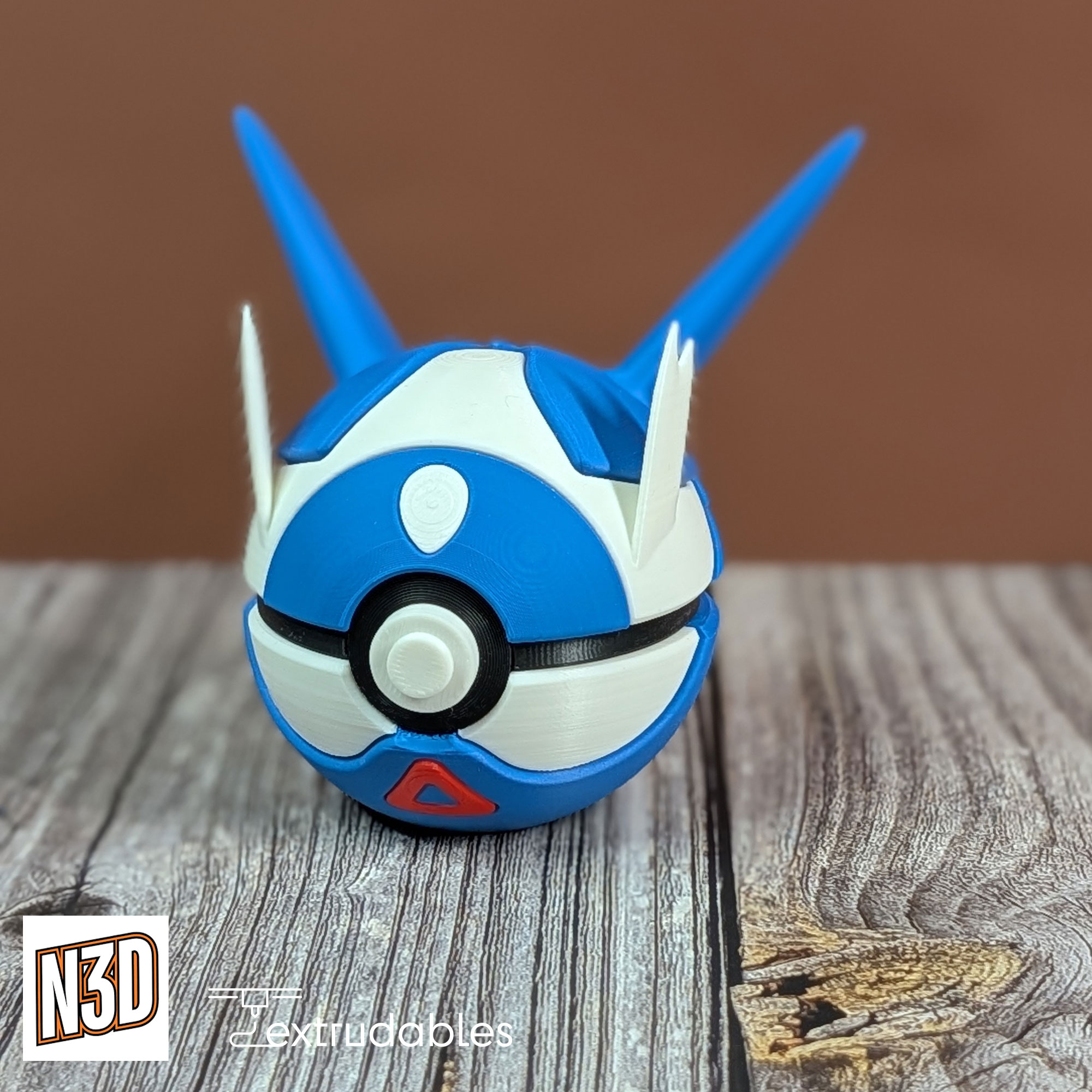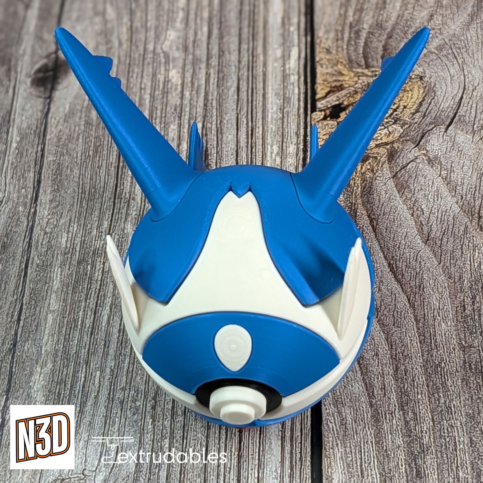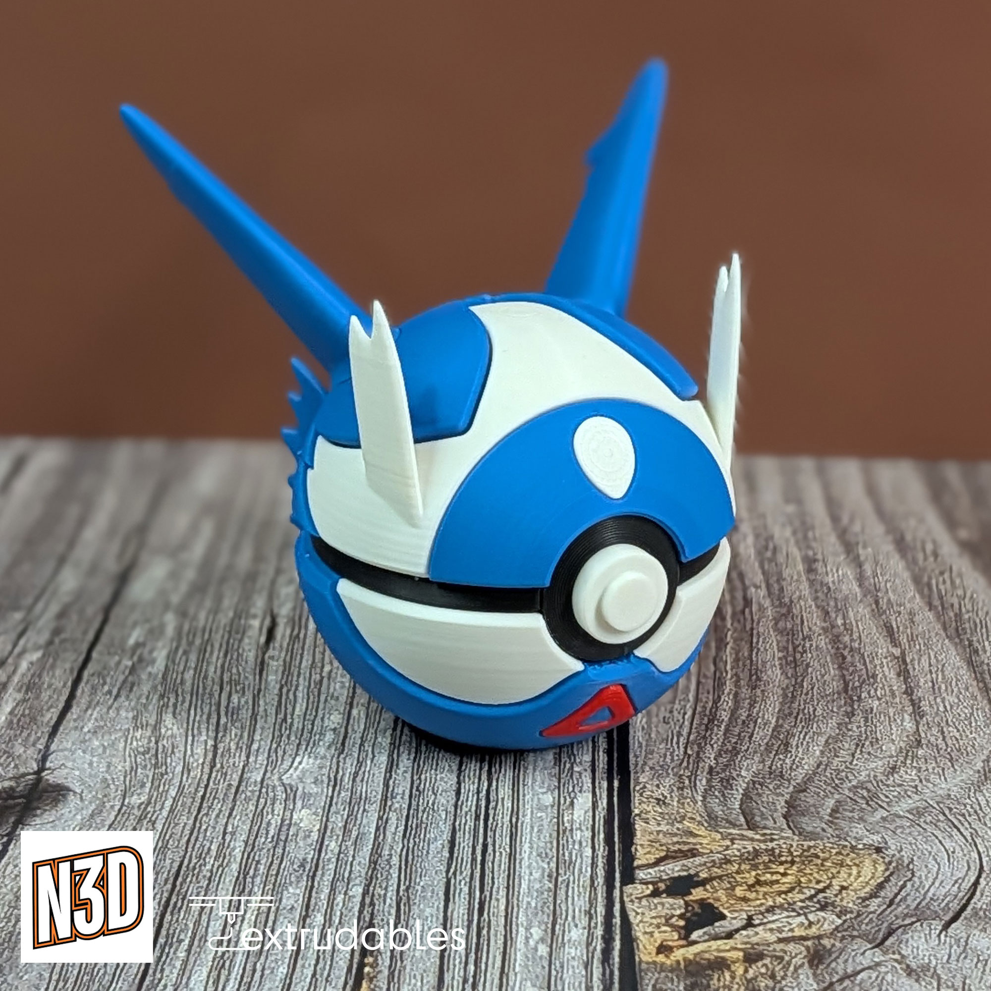 Soar high with this sleek 3D printed Poké Ball inspired by Latios, the Dragon/Psychic-type Eon Pokémon known for its speed, intelligence, and guardian spirit.