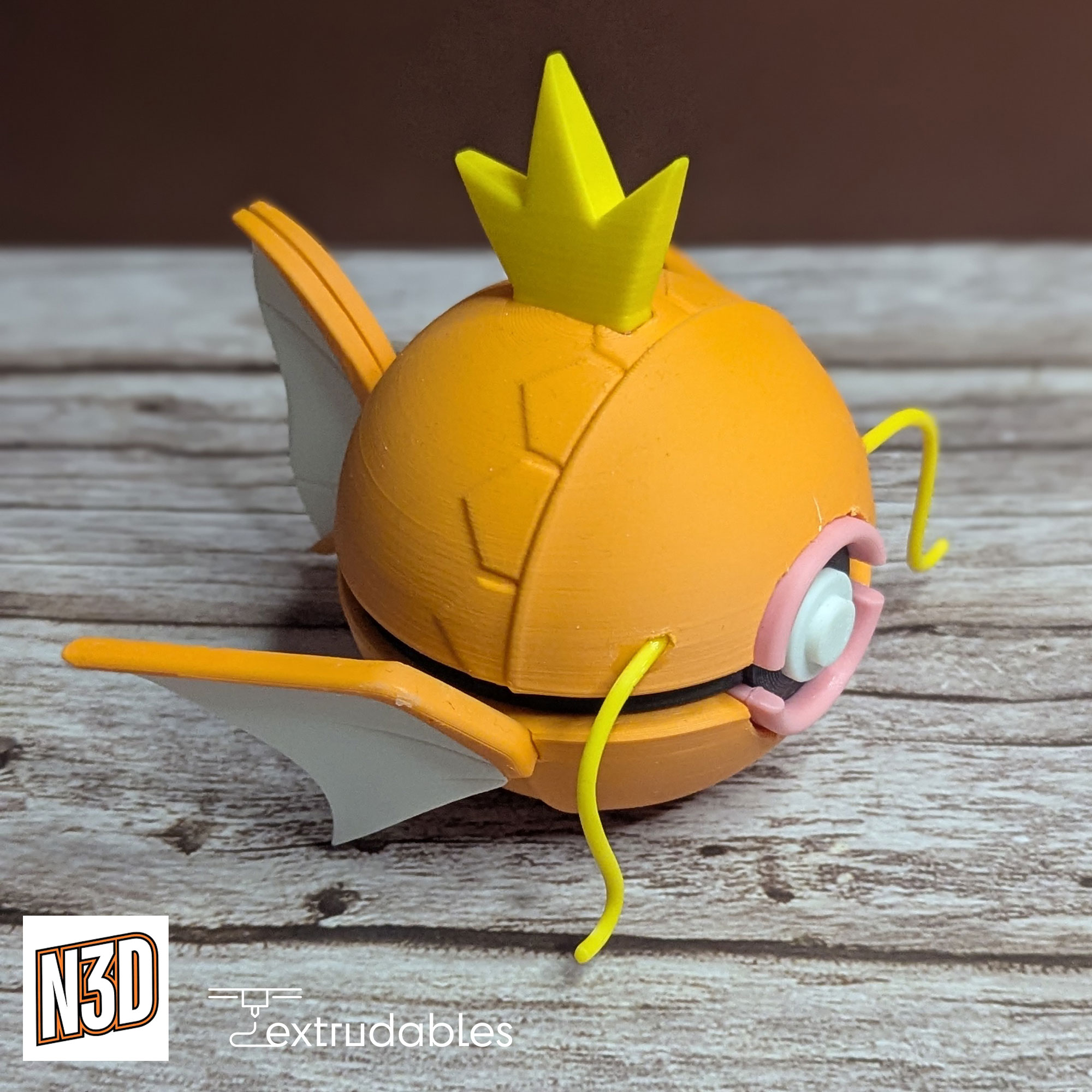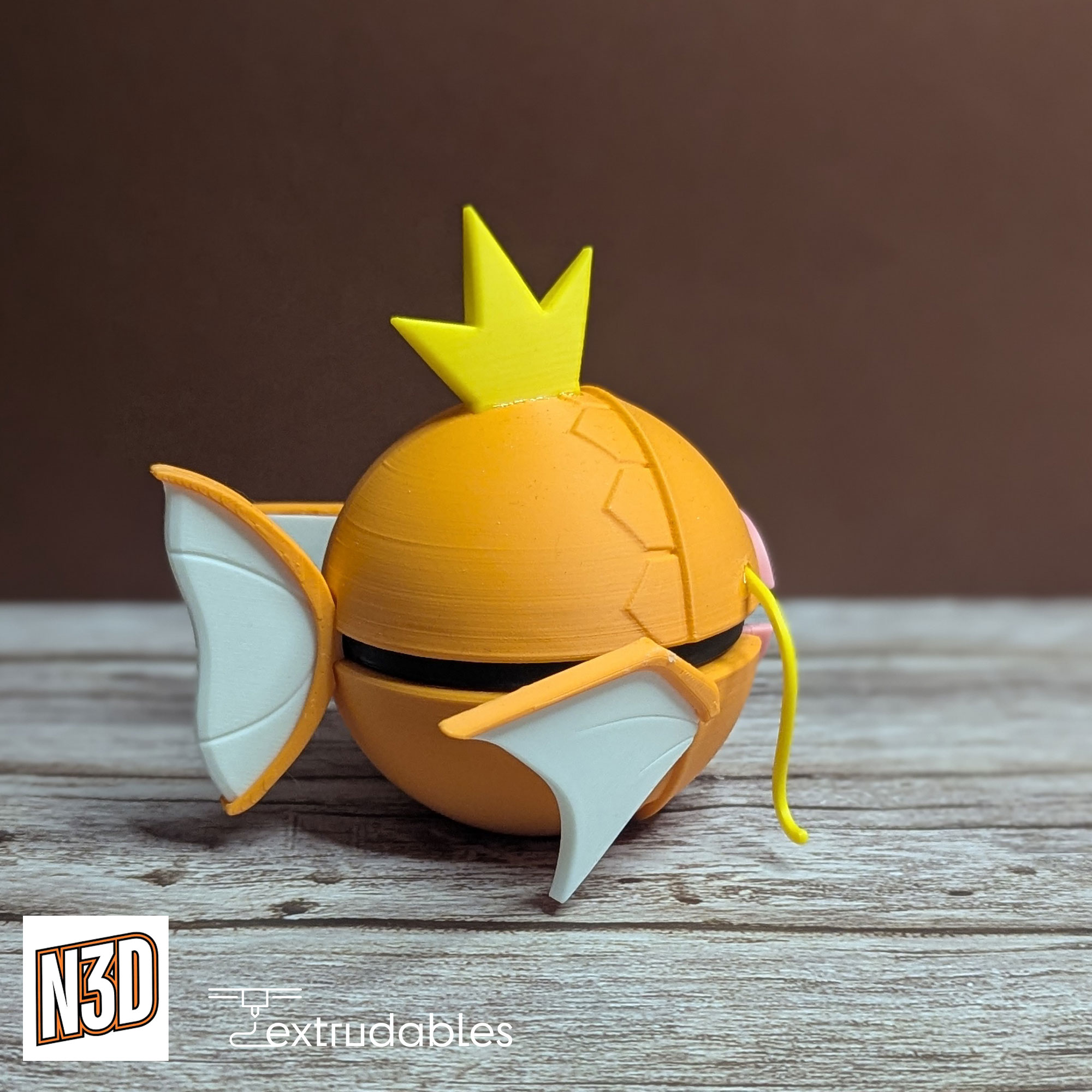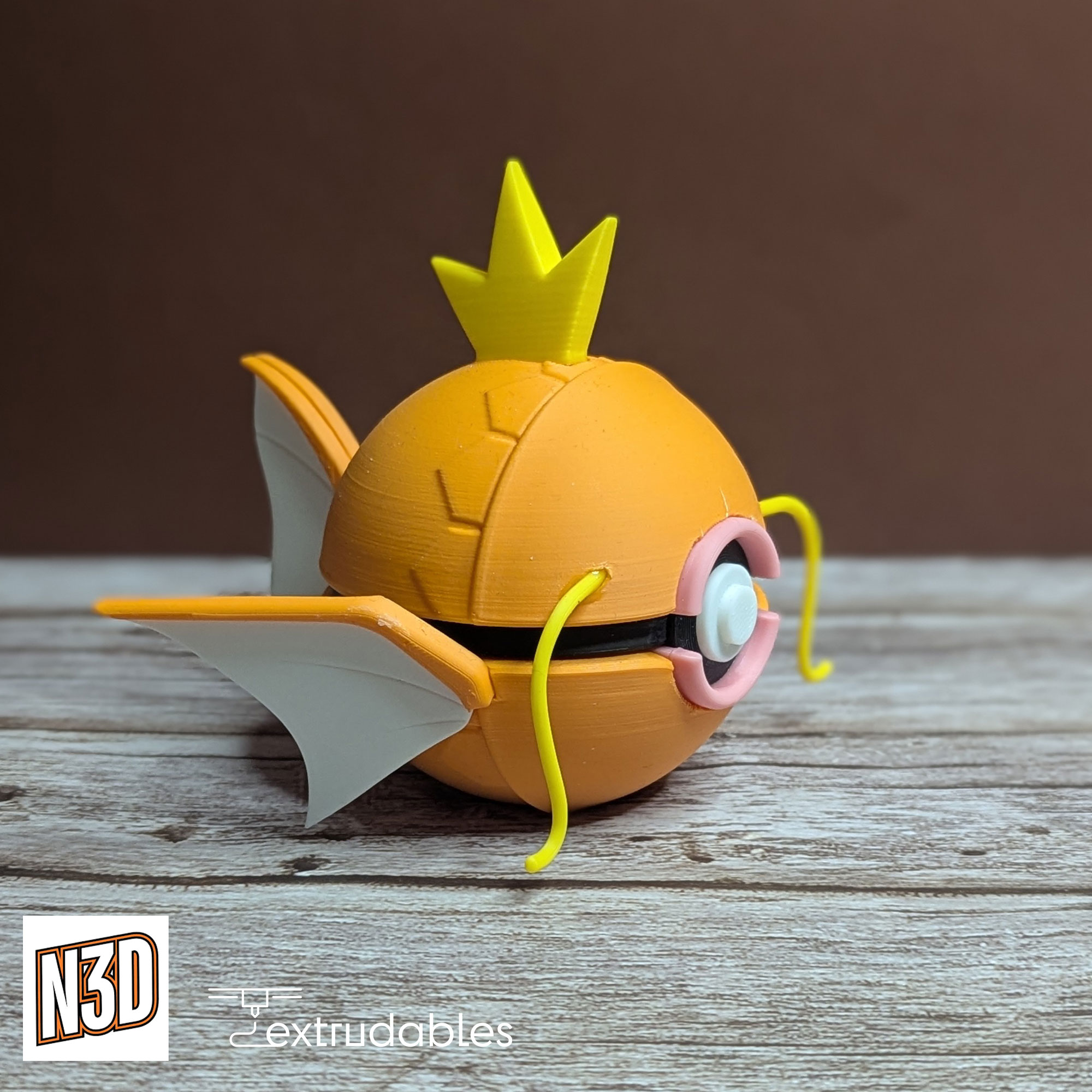 Each ball is made using eco-friendly PLA filament, giving it a lightweight yet solid build. Bring the resilient and playful spirit of Magikarp to your collection with this Magikarp Poké Ball – a must-have for Water-type enthusiasts and fans of epic evolutions!