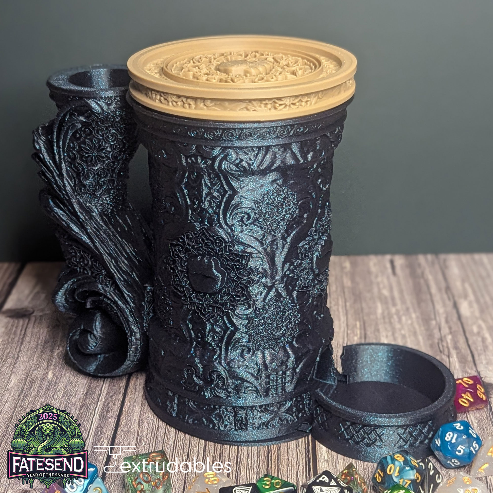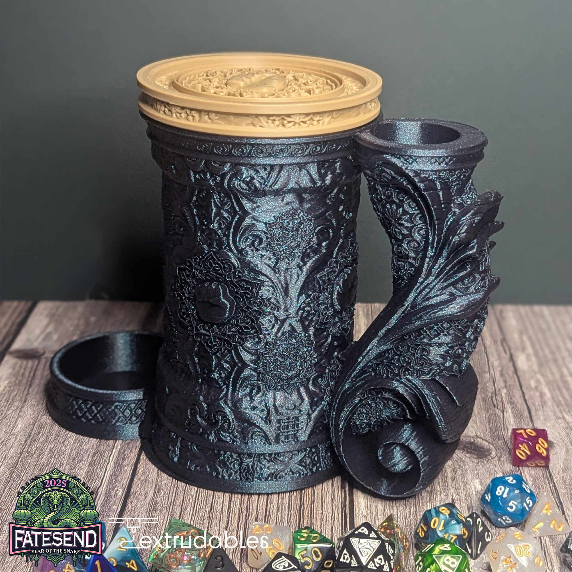 2-in-1 Design: Part enchanted tankard, part dice tower, this design features a hollow interior to snugly fit a standard 12oz (355ml) can—keeping your drink cool while you keep your dice hot.