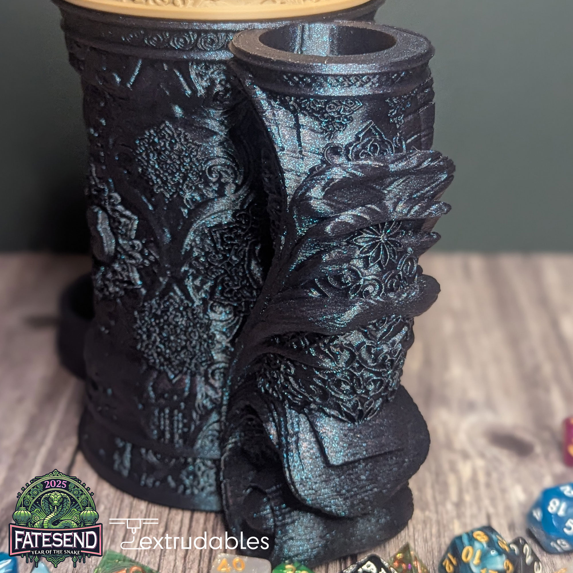 Functional Dice Roller: Drop your dice in the top and watch them tumble out through the base—perfect rolls with a dramatic reveal.