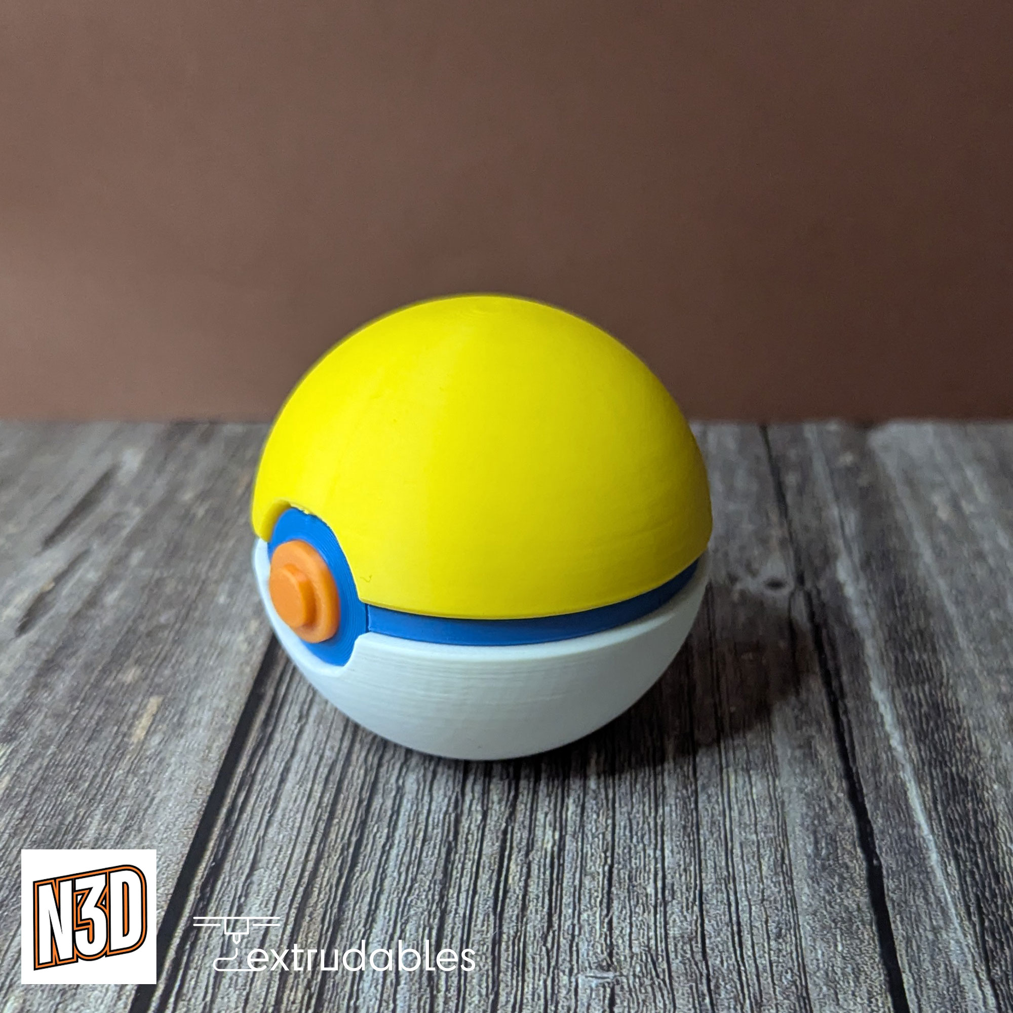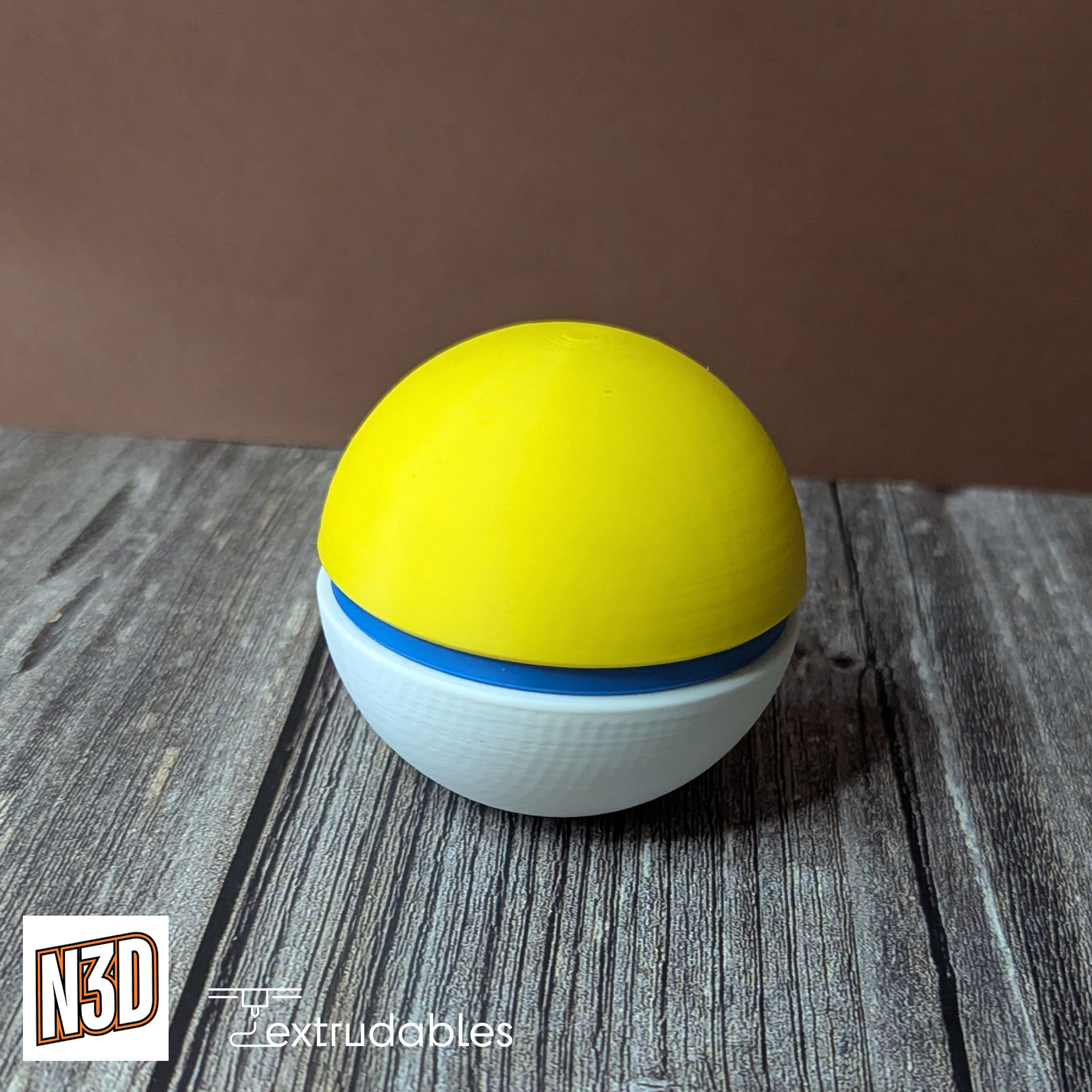 Expertly crafted from high-quality PLA filament, this Pokéball is lightweight, durable, and finished with a smooth, polished surface. Measuring approximately 3 inches in diameter, it comes in two interlocking halves that snap together securely, making it perfect for display, cosplay, or themed decor.