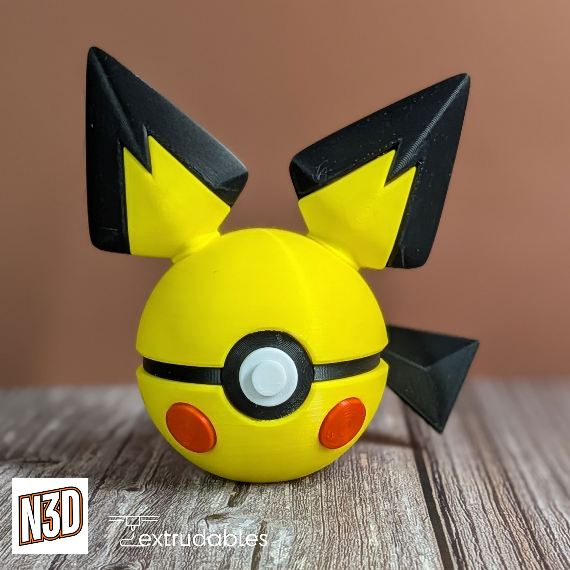 Add an extra spark of cuteness to your collection with this Pichu-inspired Poké Ball, a custom 3D-printed design inspired by the adorable Electric-type Pokémon Pichu from the Pokémon series.