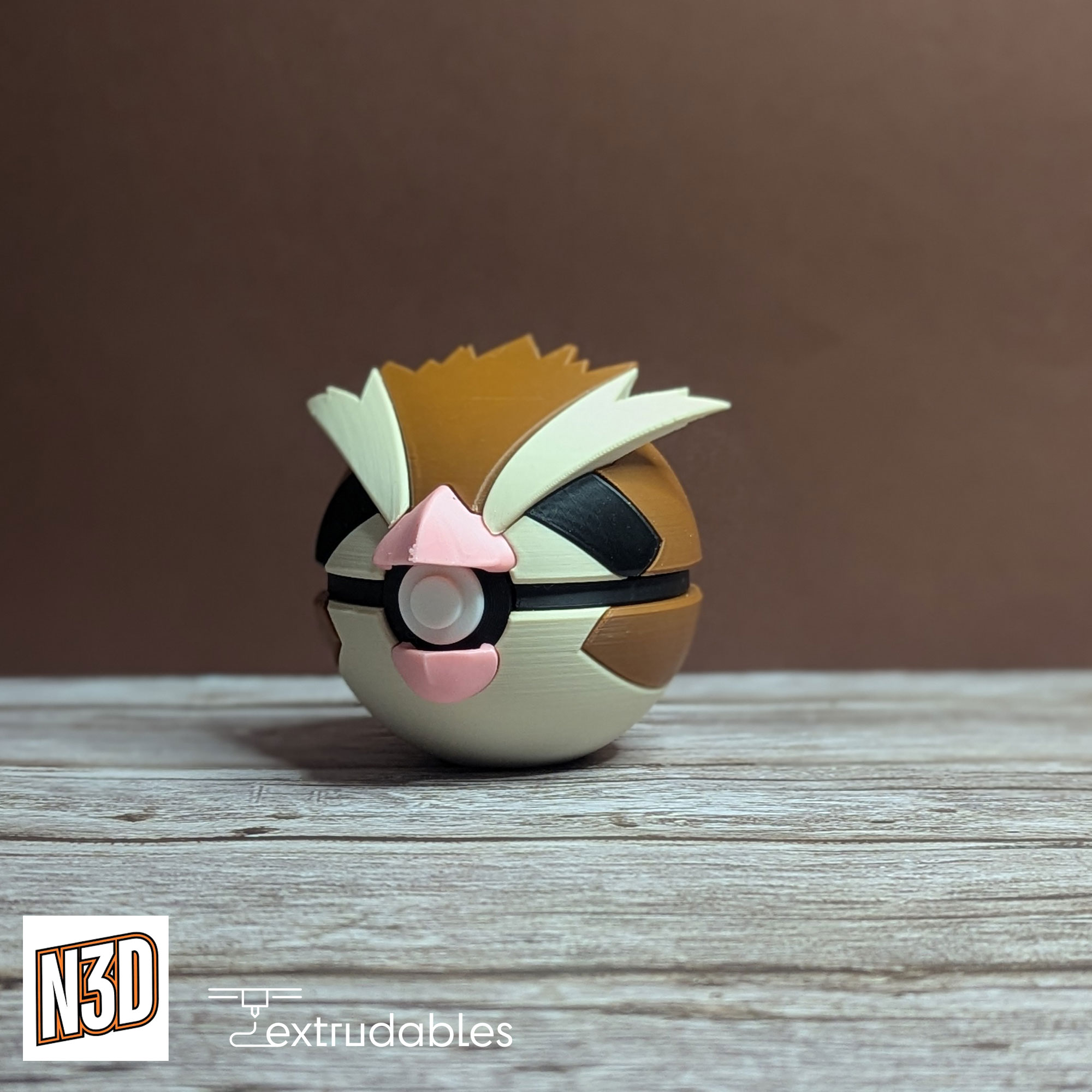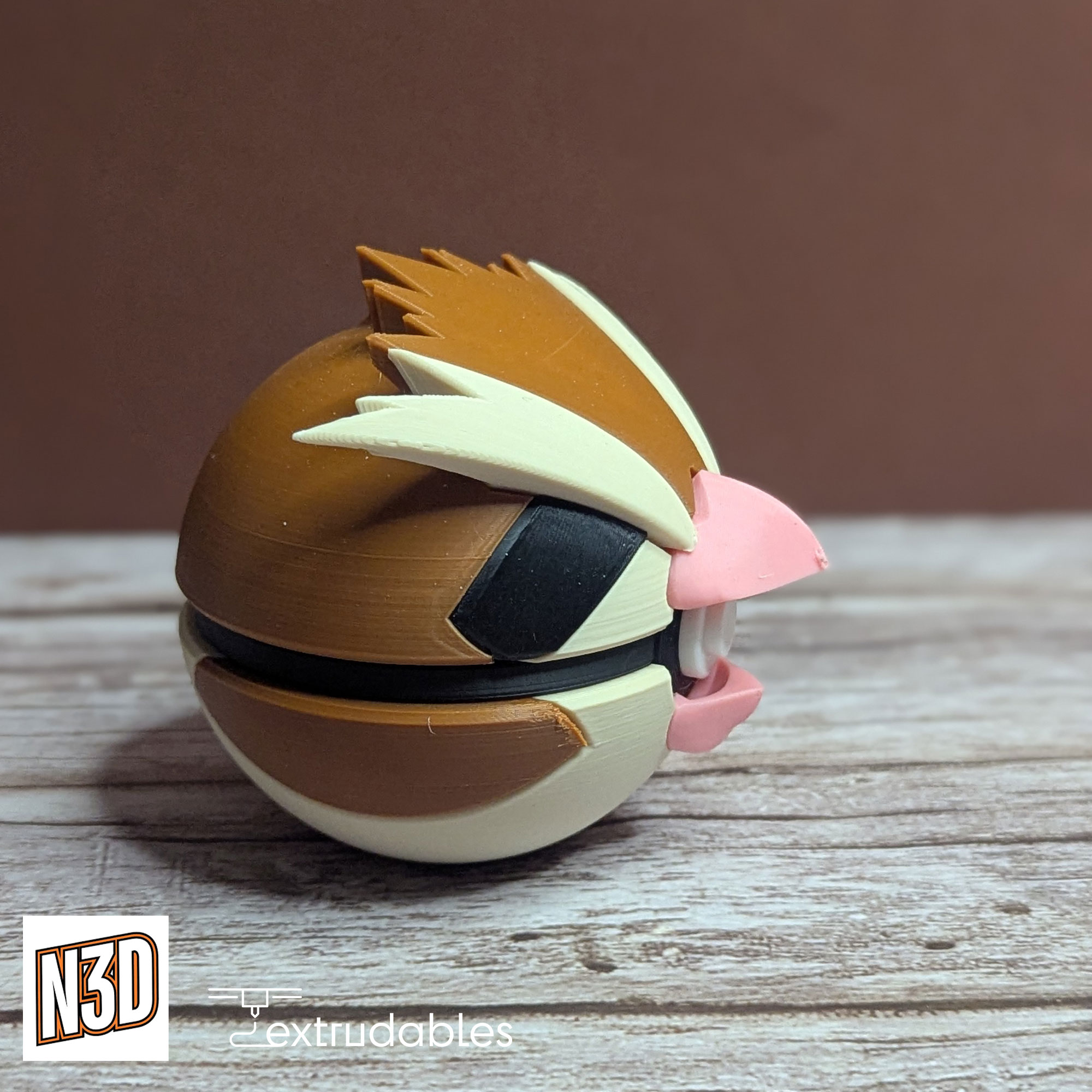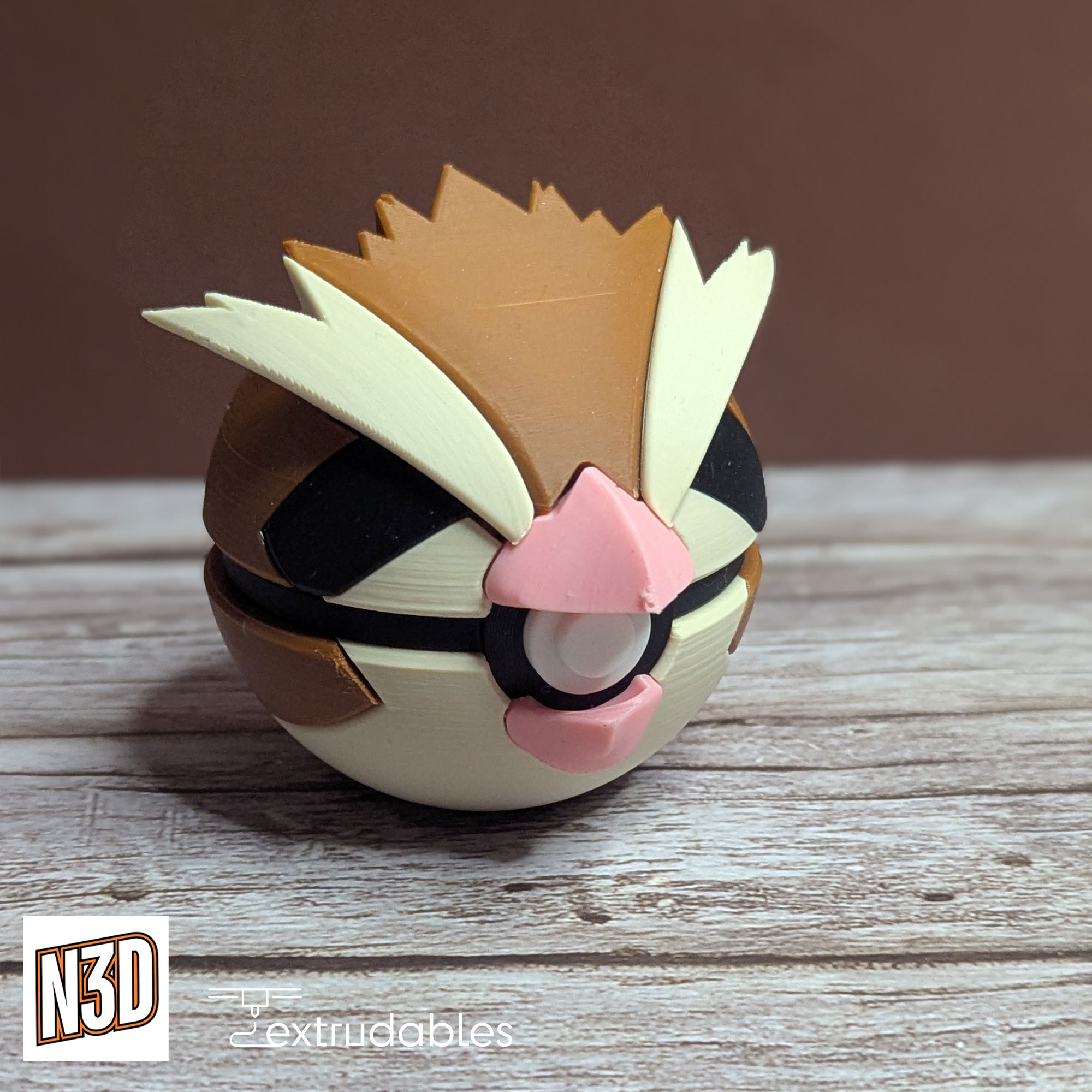 Each ball is made using eco-friendly PLA filament, giving it a lightweight yet solid build. Bring the gentle flight and classic charm of Pidgey to your collection with this Pidgey Poké Ball – a must-have for any Normal-type fan!