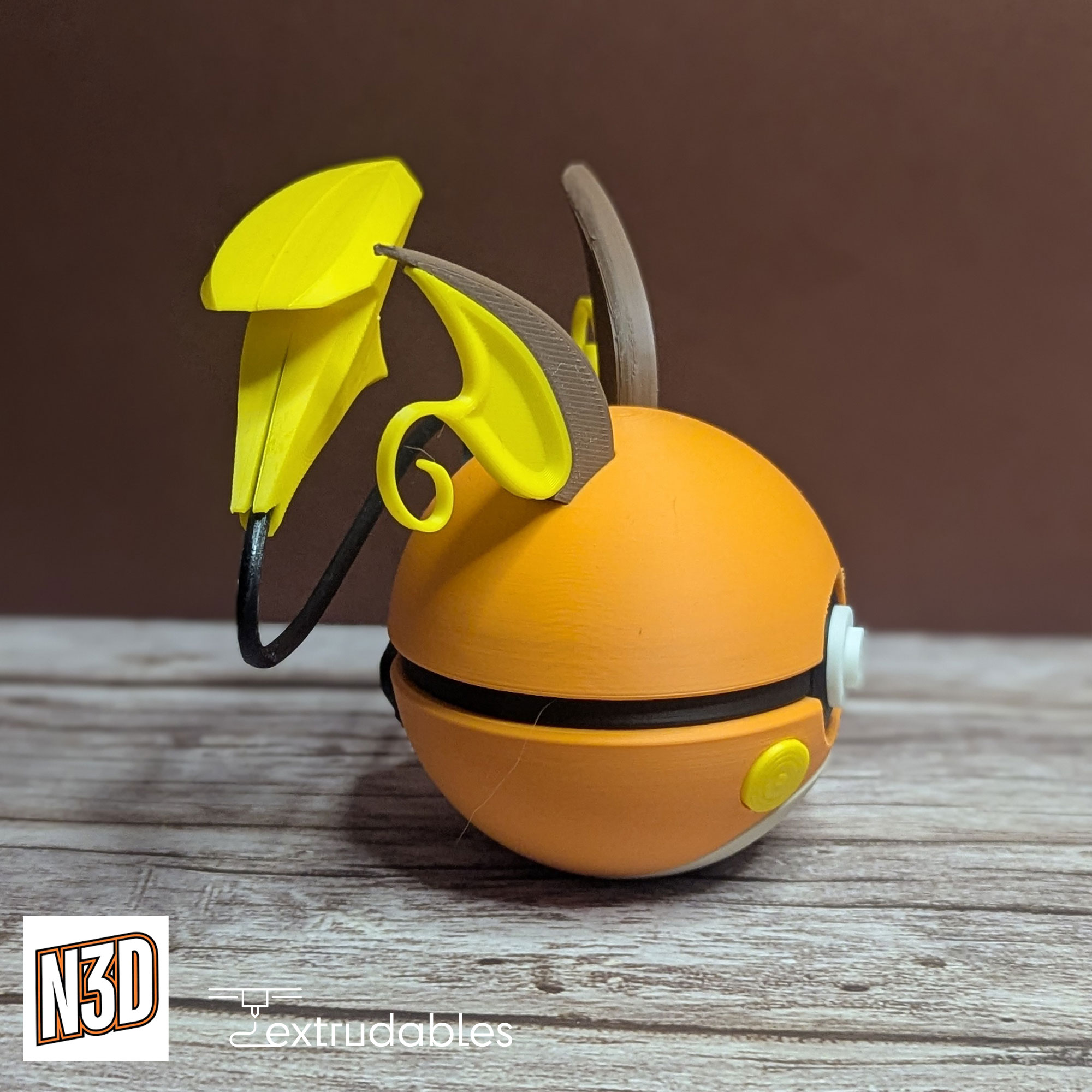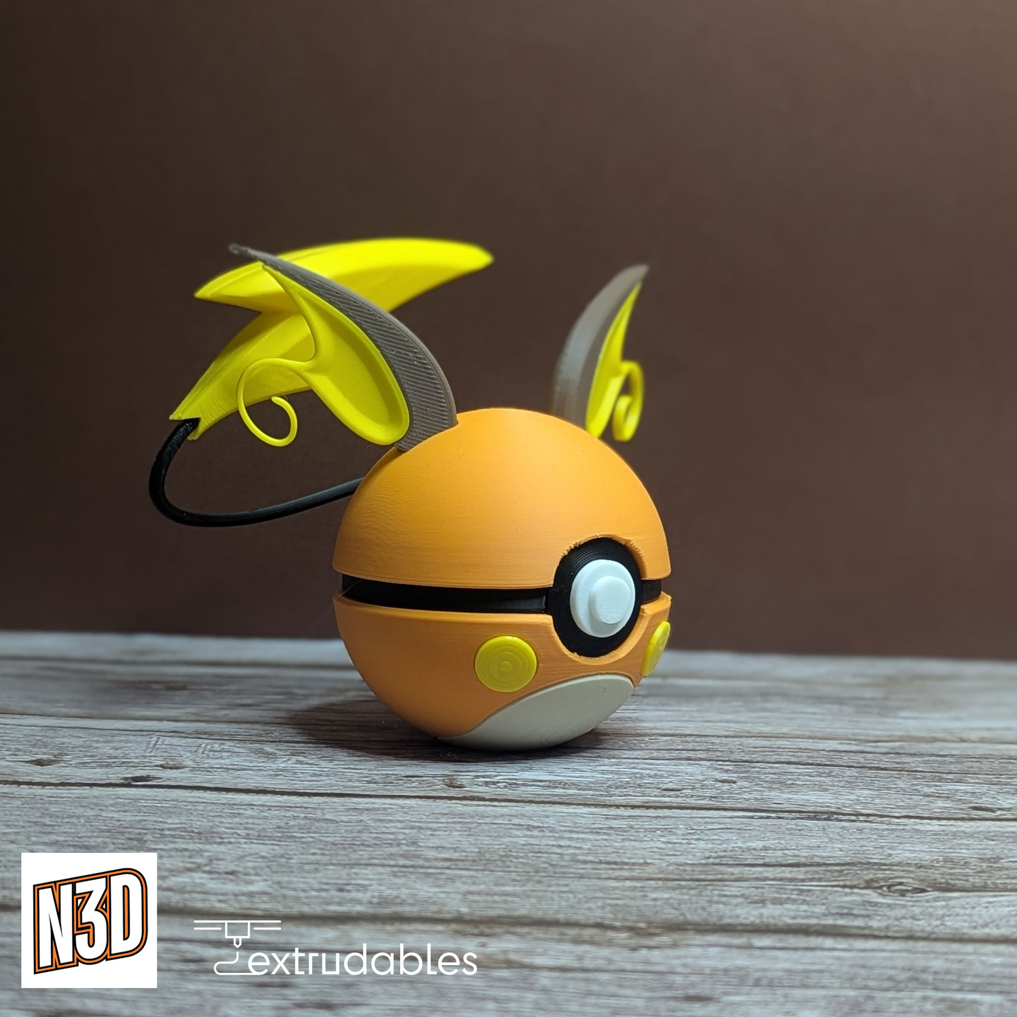 Each ball is made using eco-friendly PLA filament, giving it a lightweight yet solid build. Bring the full power of Electric-type energy to your collection with this Raichu Poké Ball – a must-have for fans of Pikachu’s evolved form!