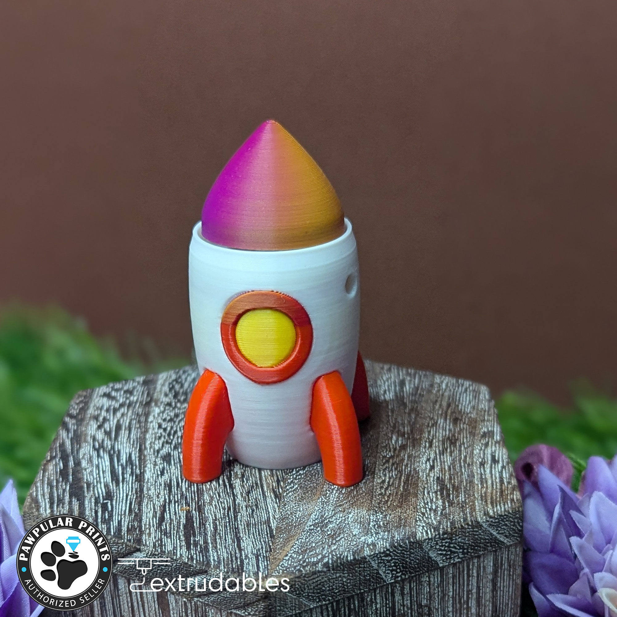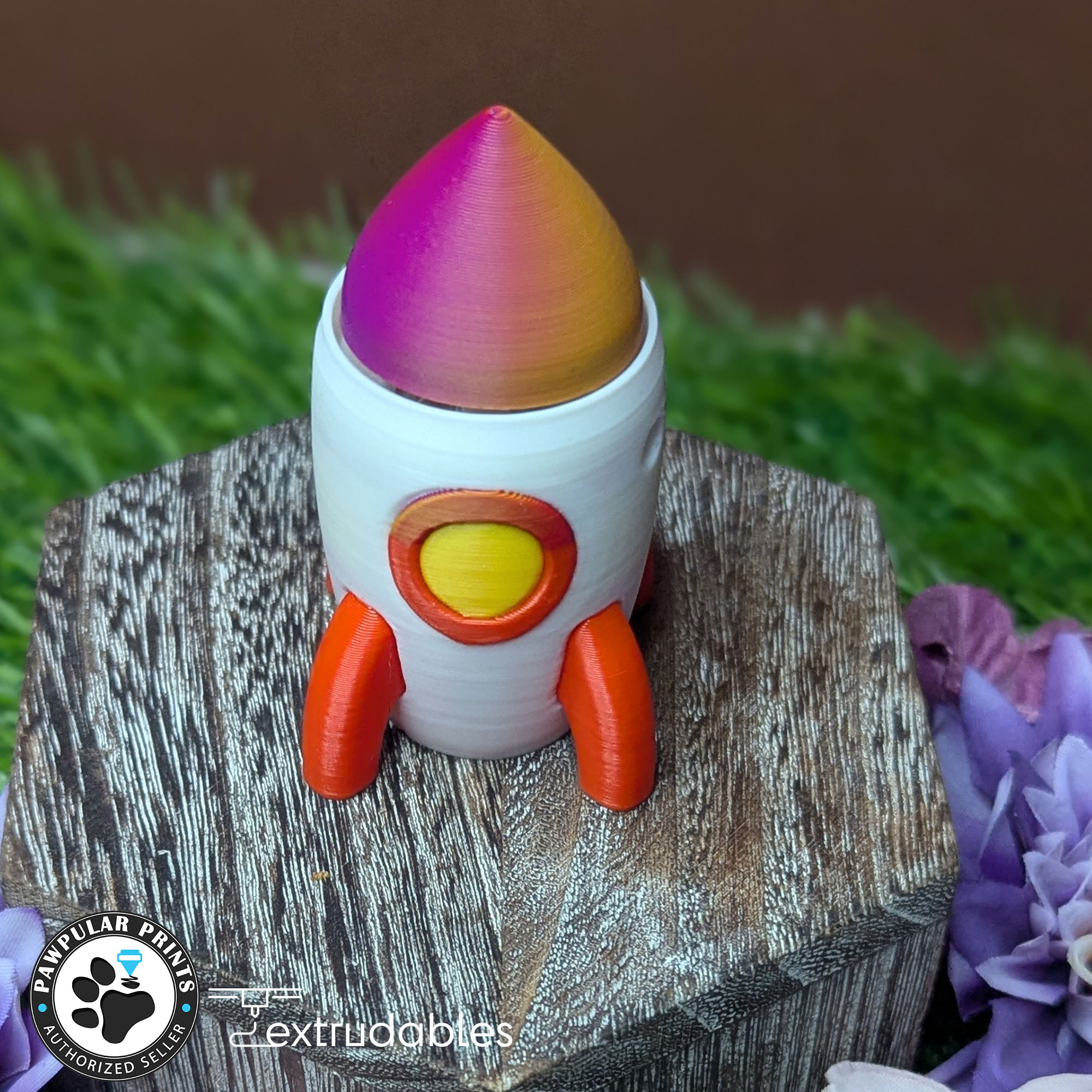 Launch your focus into orbit with this 3D printed space rocket-shaped fidget clicker! Designed with sleek rocket details—from fins to nose cone—this clicker delivers a satisfying mechanical click with every press, making it perfect for stress relief, concentration, or playful fidgeting.