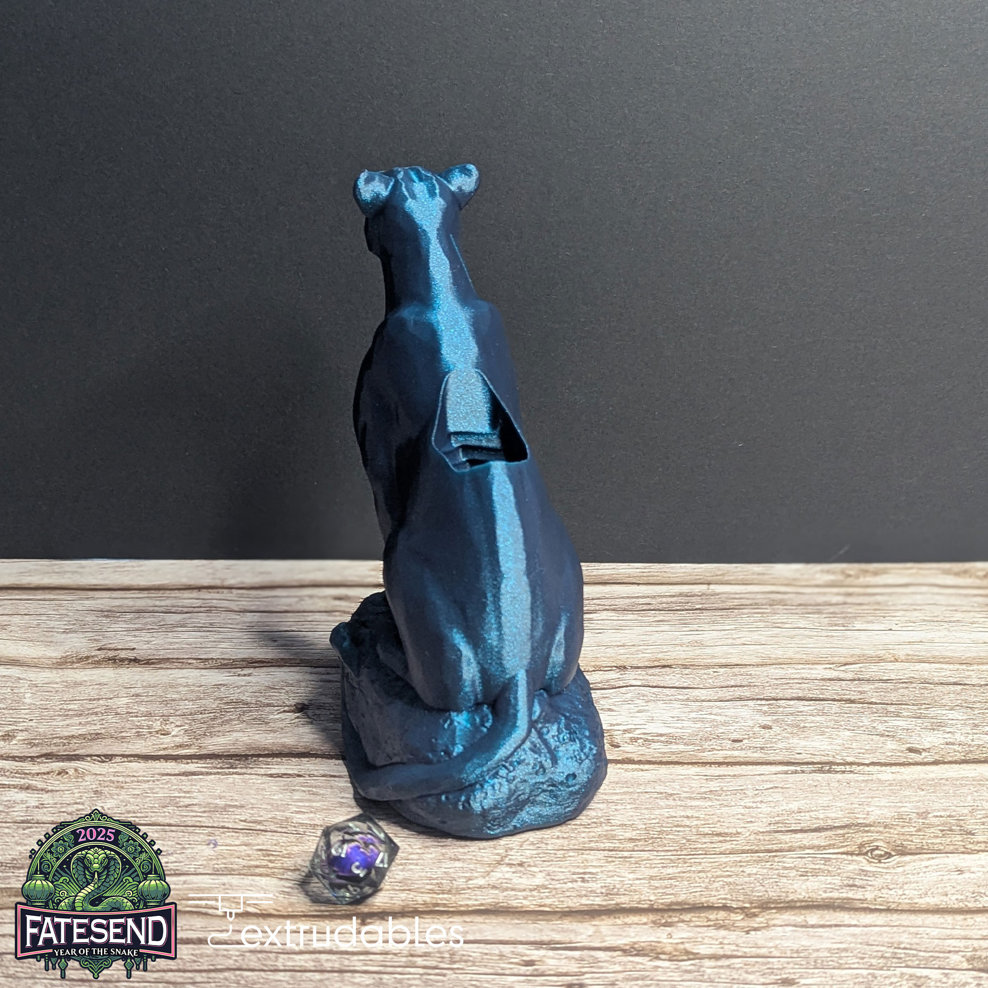 Summon the magic of ancient guardians with this 3D Printed Stone Familiar Dice Tower, a mystical addition to any tabletop gaming experience. Designed to resemble a carved stone creature infused with arcane energy, this tower enhances both the aesthetic and functionality of your game.
