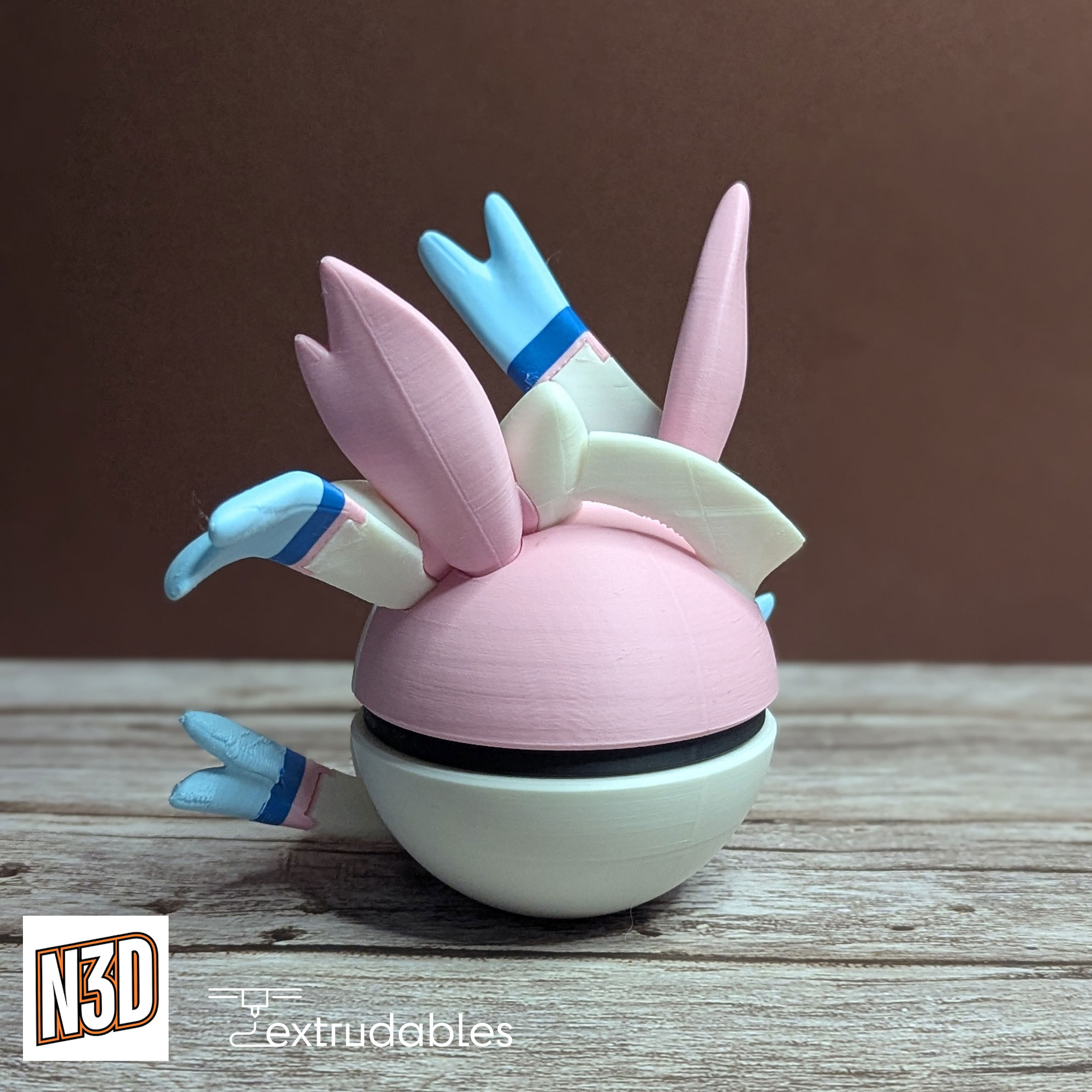 Each ball is made using eco-friendly PLA filament, giving it a lightweight yet solid build. Bring elegance and Fairy-type power to your collection with this Sylveon Poké Ball – a must-have for Eeveelution collectors and Sylveon fans alike!