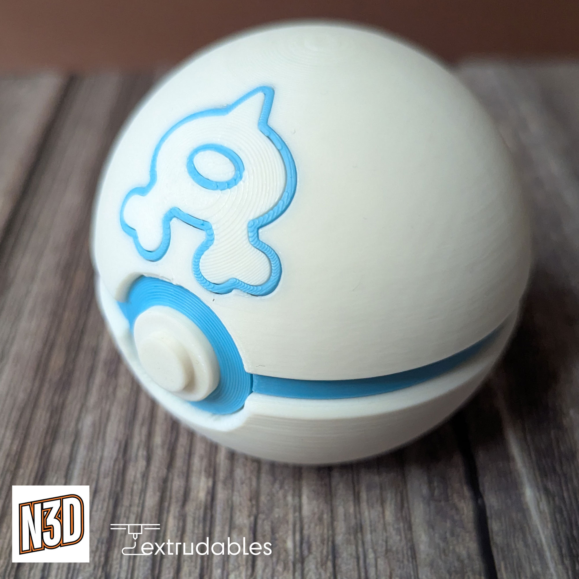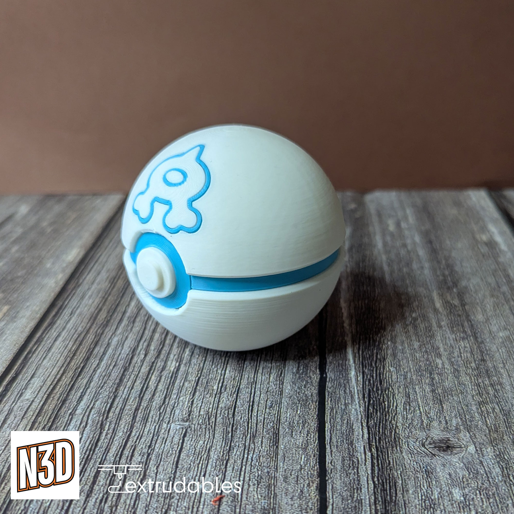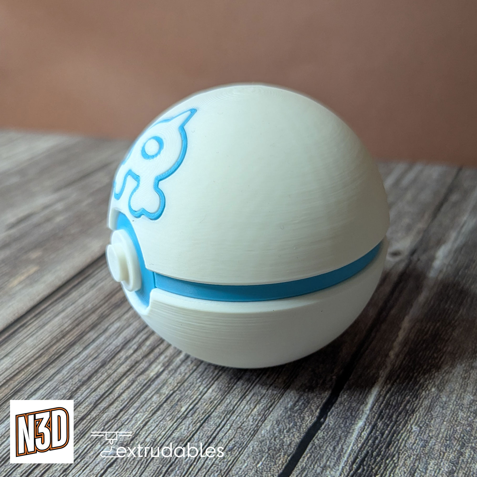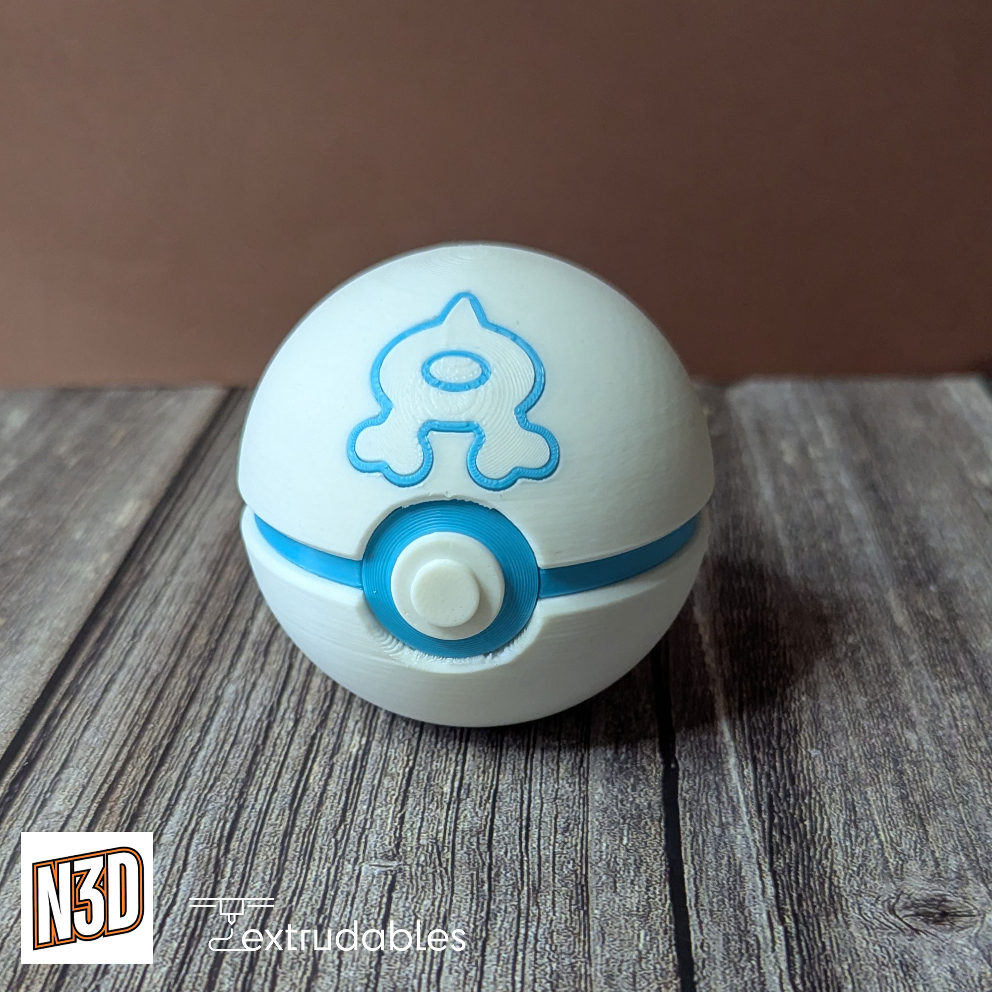Expertly crafted from high-quality PLA filament, this Pokéball is lightweight, durable, and finished with a smooth, polished surface. Measuring approximately 3 inches in diameter, it comes in two interlocking halves that snap together securely, making it perfect for display, cosplay, or themed decor.