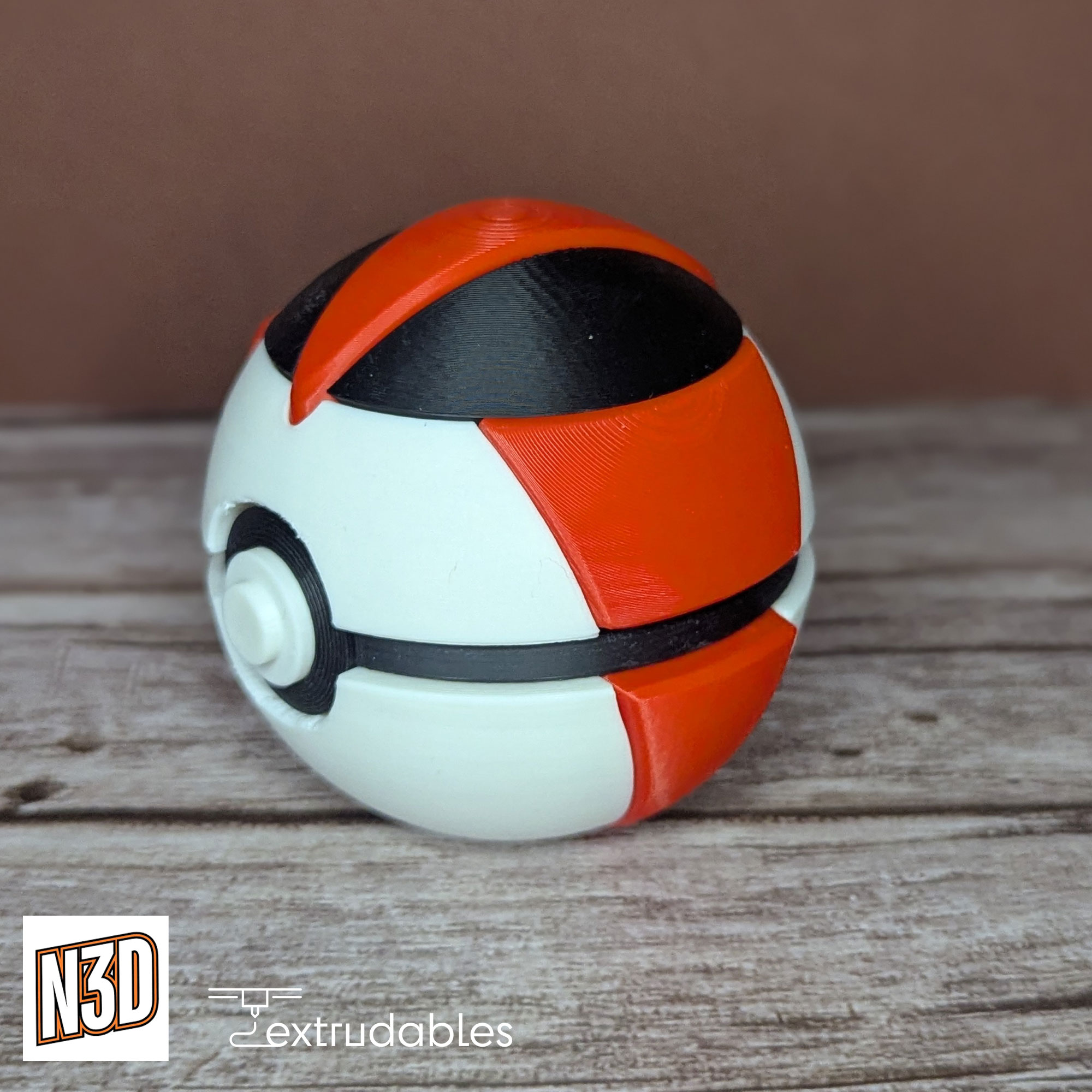 Bring strategy and style to your collection with this 3D printed Timer Ball, inspired by the Pokéball designed to increase effectiveness the longer a battle goes on. Featuring a bold red, white, and black color scheme with distinctive red clock-like patterns, the Timer Ball stands out as a symbol of patience and precision in any Pokémon Trainer’s toolkit.