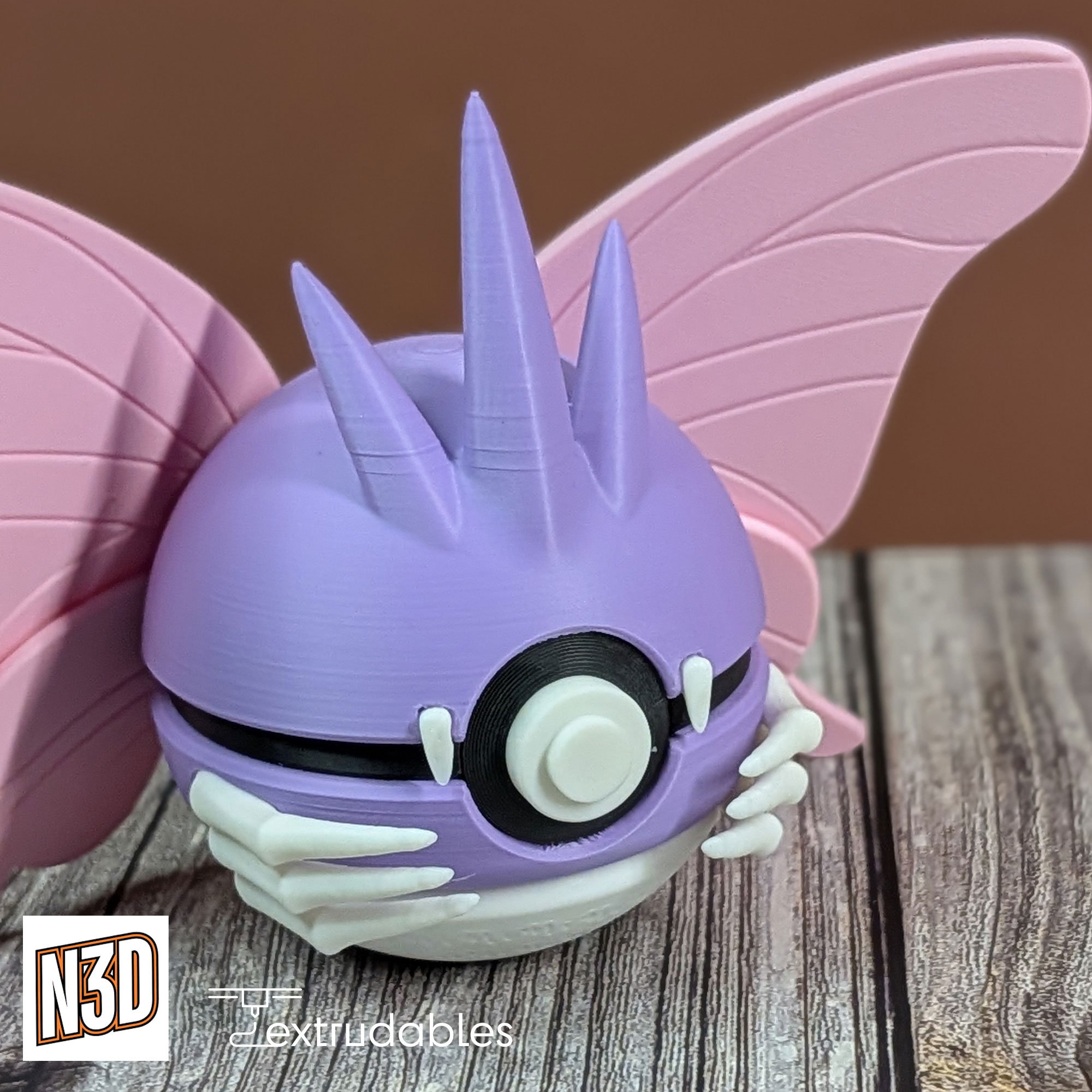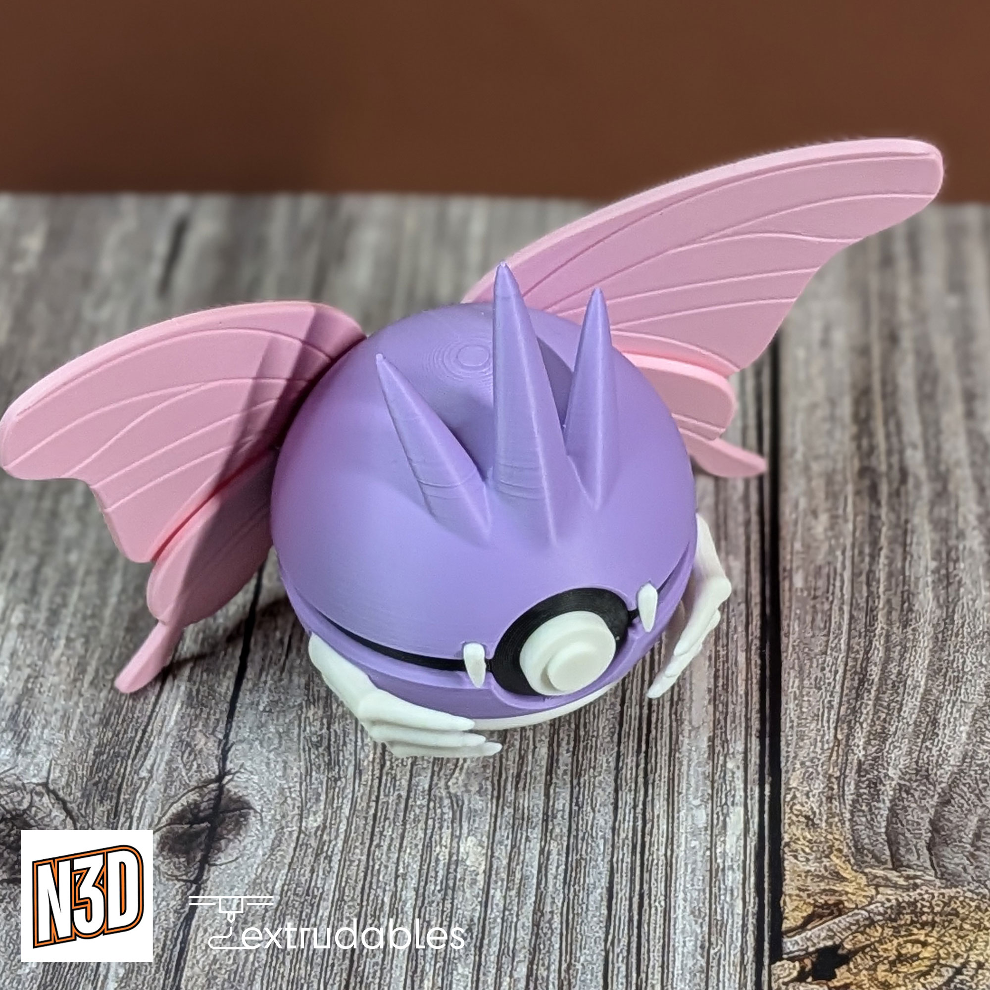 Designed with soft purples, deep indigos, and subtle wing-inspired accents, this 3D printed Poké Ball captures Venomoth’s mysterious nighttime presence.