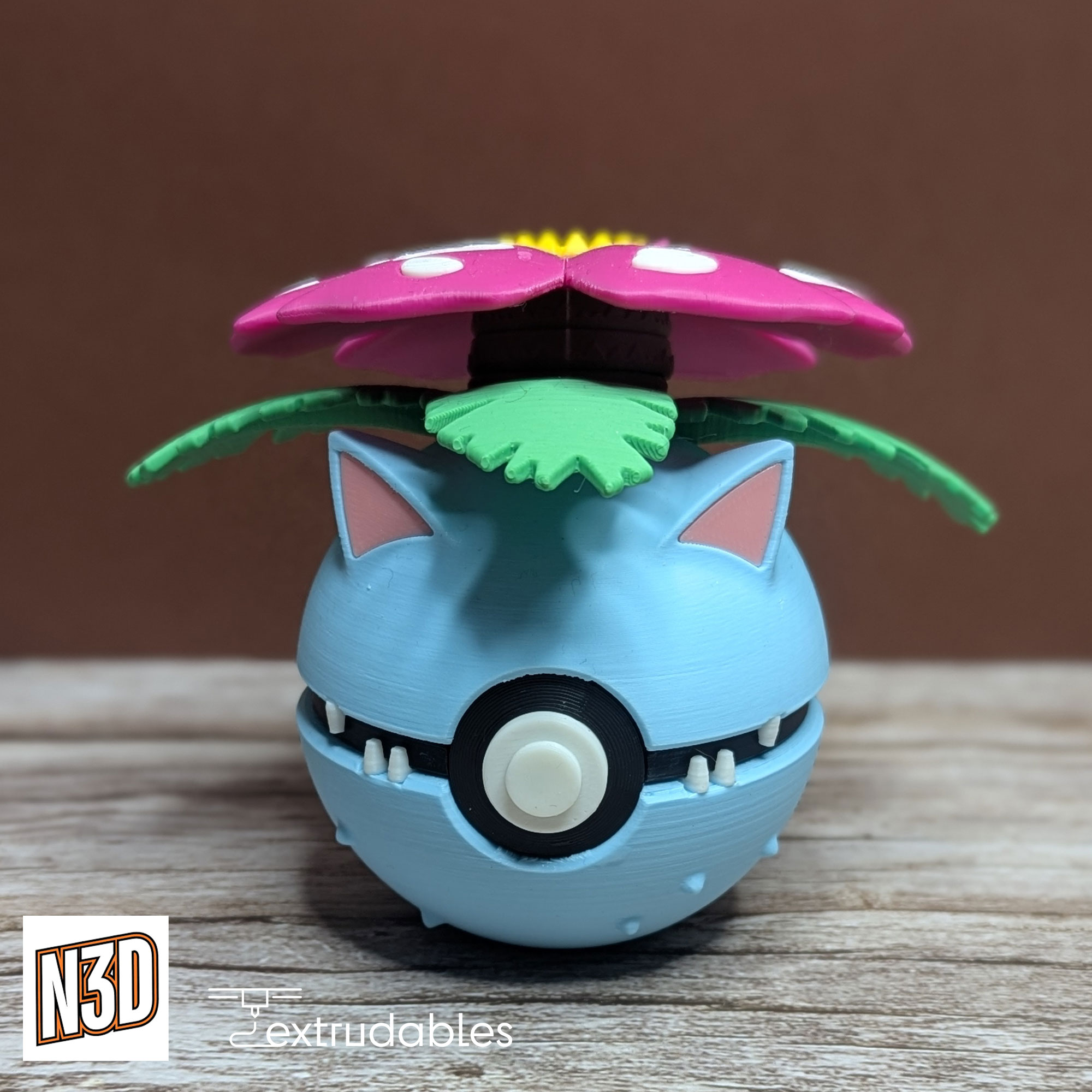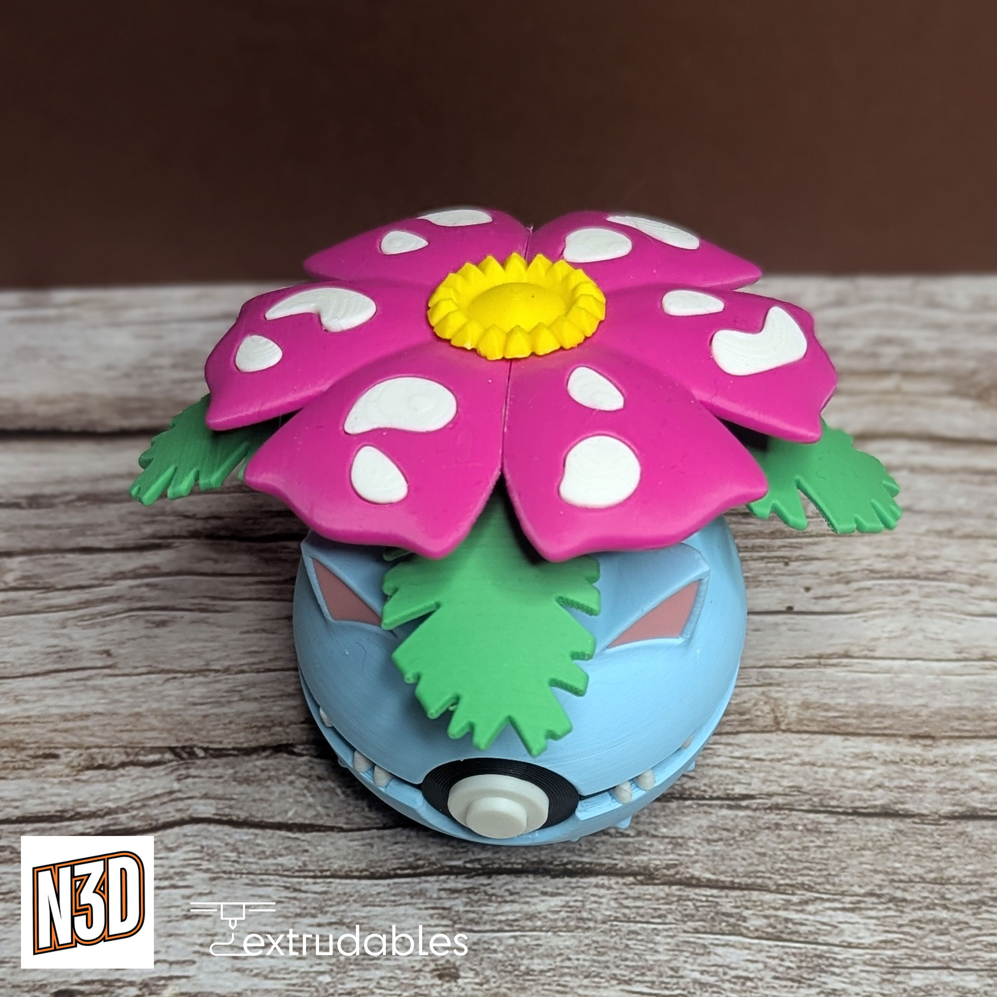 Each ball is made using eco-friendly PLA filament, giving it a lightweight yet solid build. Bring the full strength and evolutionary beauty of Venusaur to your collection with this Venusaur Poké Ball – a centerpiece for any Grass-type fan!