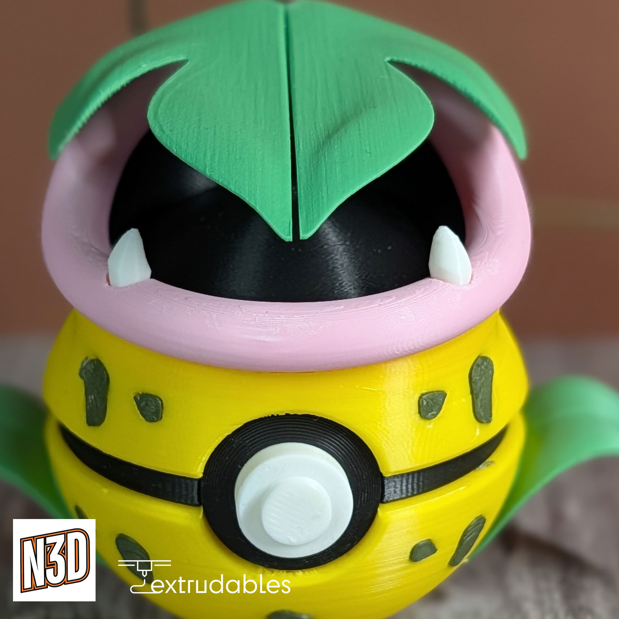 Bring a touch of jungle danger to your collection with this Victreebel-inspired Poké Ball, a unique 3D-printed piece designed for fans of carnivorous Grass-types. Inspired by the iconic design and colors of Victreebel from the Pokémon universe, this Poké Ball blends classic trainer gear with the wild aesthetic of the forest’s most notorious pitcher plant.