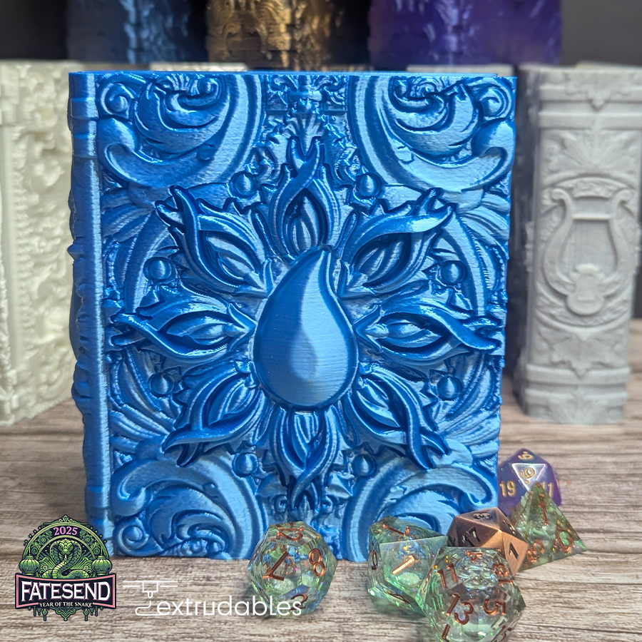Whether you’re conjuring massive waves, controlling the tides, or summoning creatures from the deep, the Water Magic Blue Mana Tome Dice Vault and Dice Tray is your perfect companion. Store your dice in a tome that reflects the power of water, and let your rolls flow with the forces of nature.