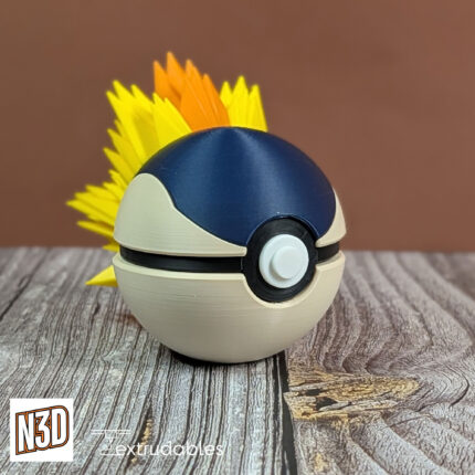 Inspired by the adorable yet battle-ready Cyndaquil, this custom 3D printed Poké Ball brings starter Pokémon energy to your shelf.