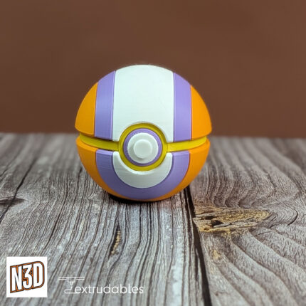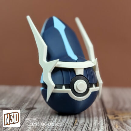 Celebrate the cosmic majesty of Dialga with this themed 3D printed Poké Ball. Its sleek and metallic design mirrors Dialga’s timeless presence and powerful Dragon/Steel aura.