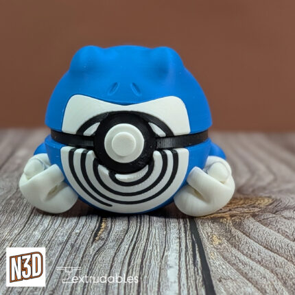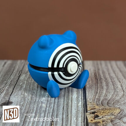 Inspired by Poliwhirl from the Pokémon universe, this custom 3D printed Poké Ball captures the playful and determined spirit of this aquatic Pokémon.