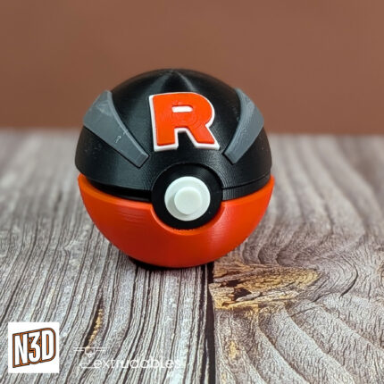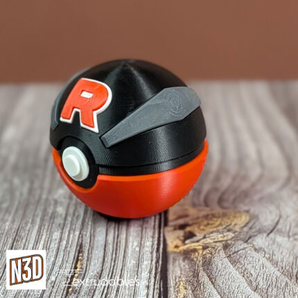 Inspired by the infamous Team Rocket from the Pokémon universe, this custom 3D printed Great Ball brings the mischievous energy of Jessie, James, and Meowth to your collection.